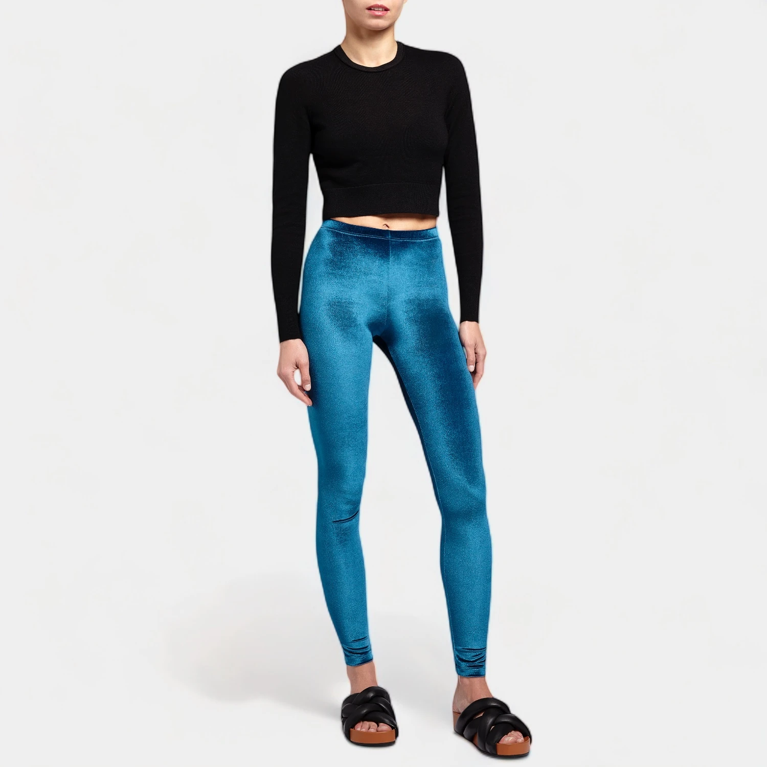 Ce legging pour femme en velours lisse séduit par son toucher soyeux et sa couleur bleu pétrole profonde et raffinée. Sa coupe classique épouse la silhouette sans la contraindre, offrant un confort optimal au quotidien. Idéal pour le cocooning, les moments de détente ou pour composer des looks casual chic, il se porte aussi bien à la maison qu’en extérieur. Une pièce douce, polyvalente et facile à associer.