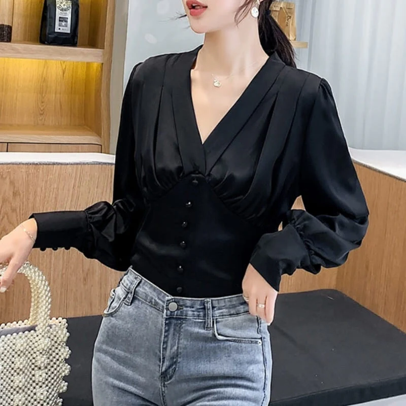 Blouse Satin Noir Boutonnée