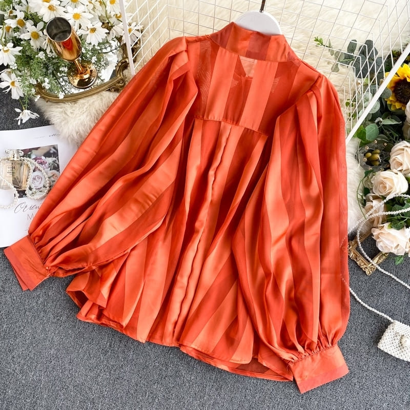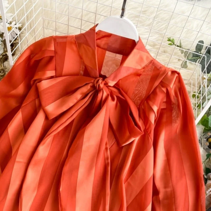 Vivez votre vie tout en légèreté avec cette somptueuse blouse en satin. La légèreté et douceur de sa matière fluide vous fera fondre de bonheur. On craque pour son design rayé rouge clair et foncé. Le col papillon super tendance associé aux manches longues bouffantes donnera du volume à votre tenue.