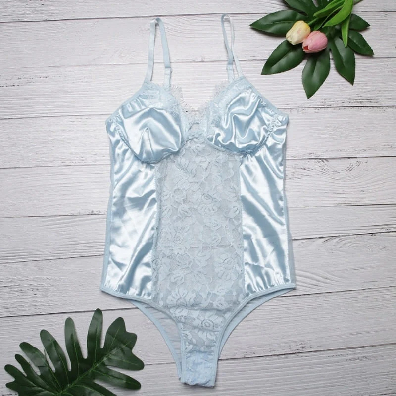 BODY EN SATIN DE COULEUR BLEU AVEC DENTELLE