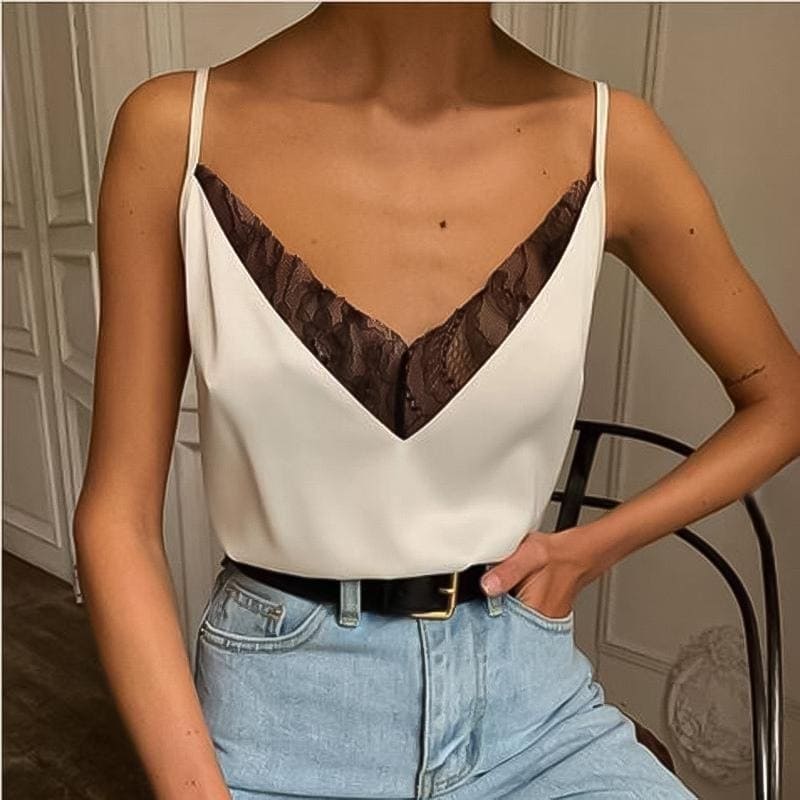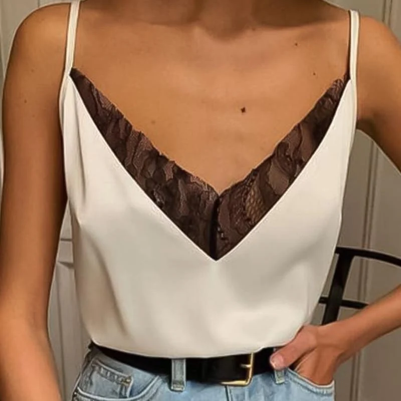 Tu veux un look simple et élégant à la fois ? Alors jette ton dévolu sur ce sublime caraco en satin ! L’association du tissu blanc satiné, avec la dentelle noire est tout simplement ravissante. Cette encolure en v plongeante ajoute de la sensualité, en dévoilant ton décolleté. Porté avec un jean, tu es sure d’avoir un style casual élégant.