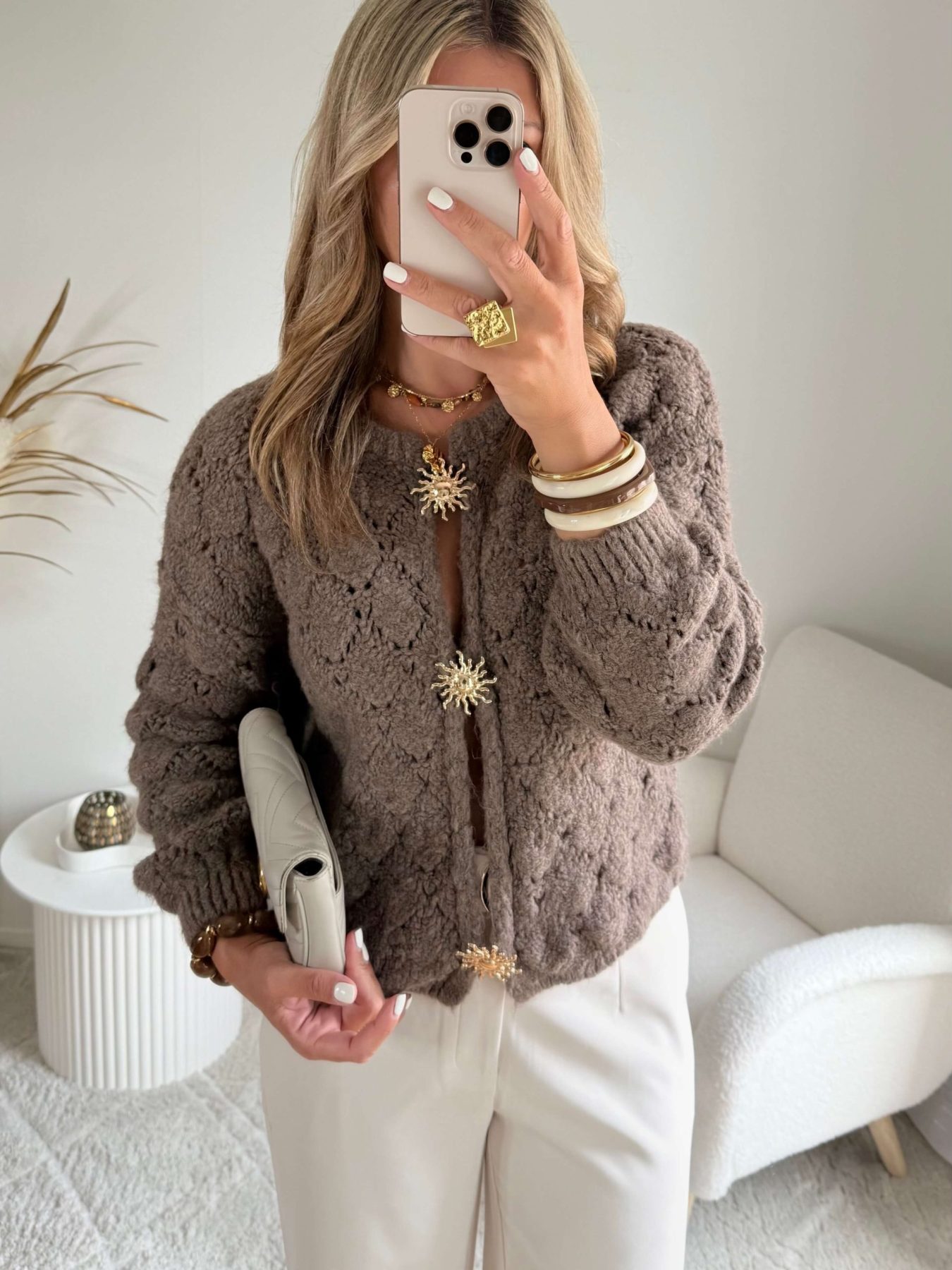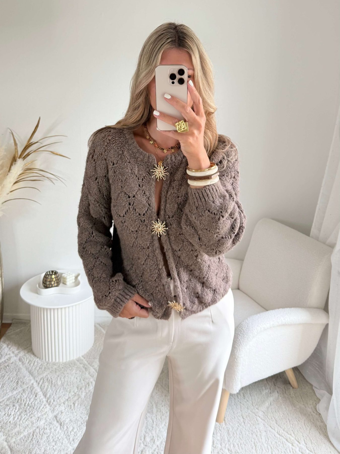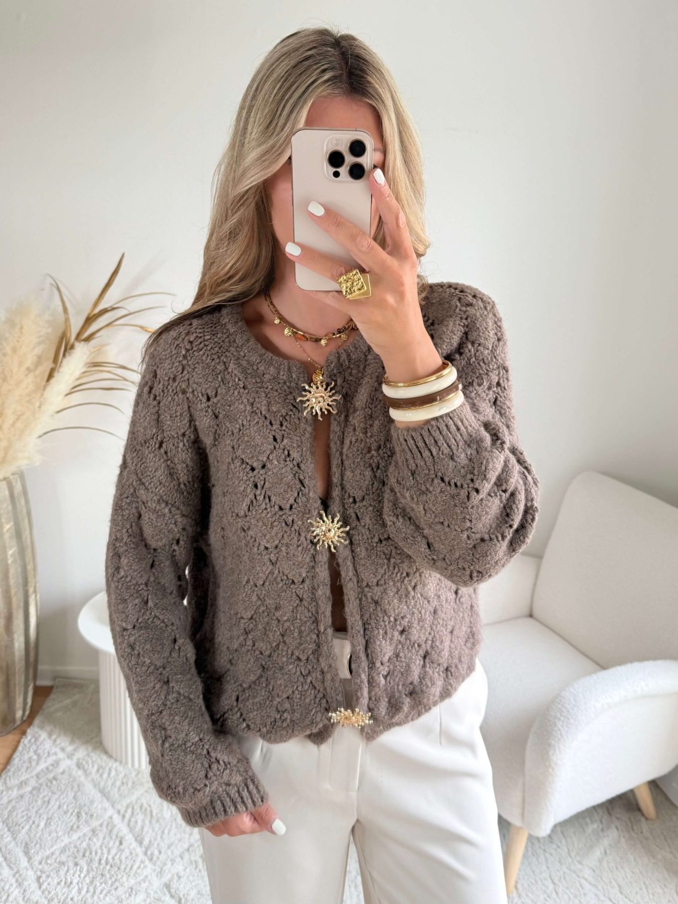 Cardigan broches soleil