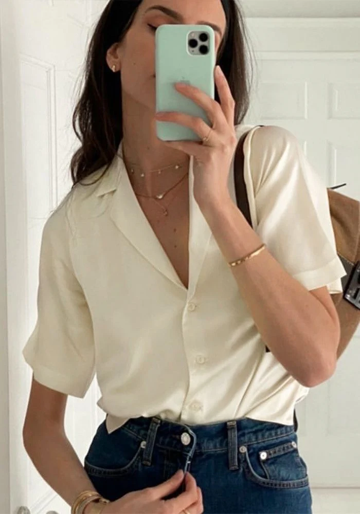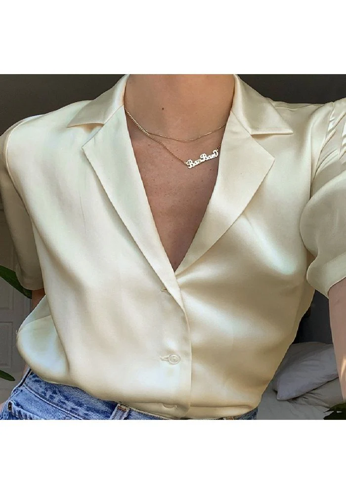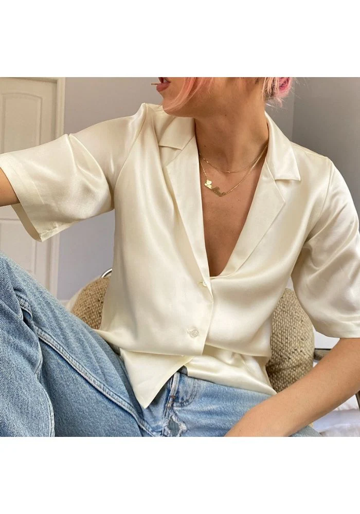 Chemisier en satin de couleur beige pour femme