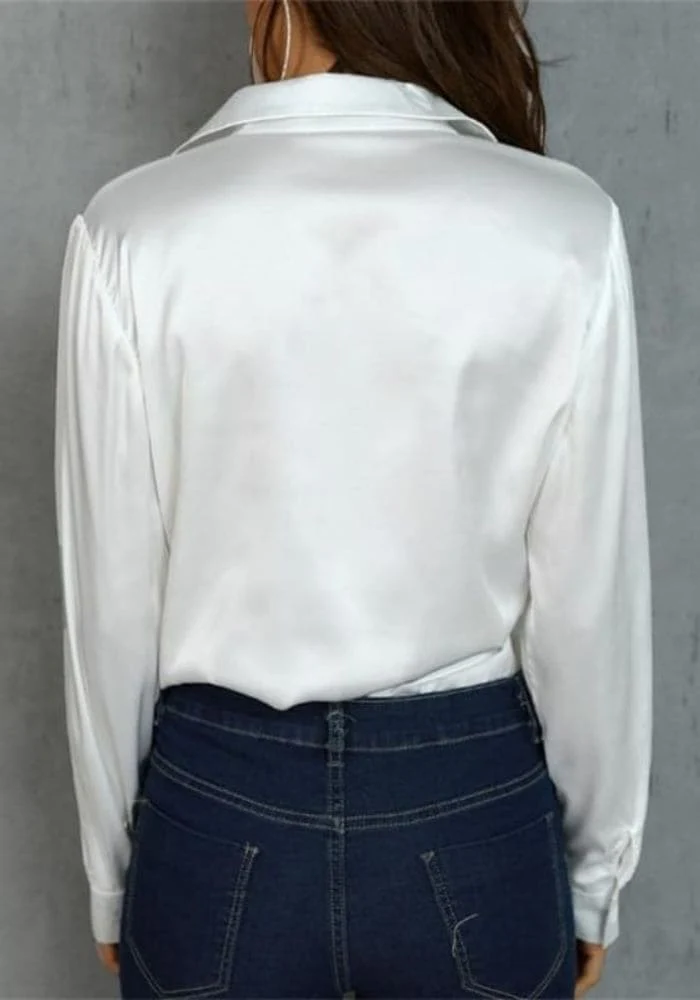Chemisier en satin pour femme couleur blanc