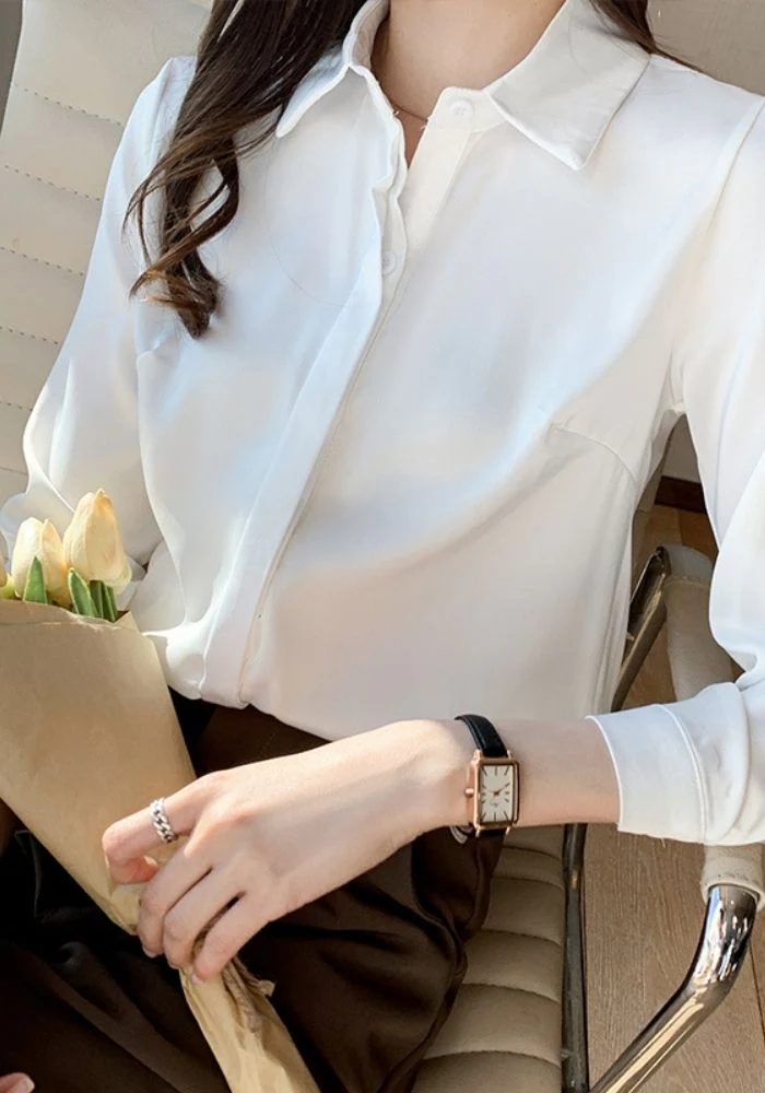 Chemisier en satin blanc coupe droite