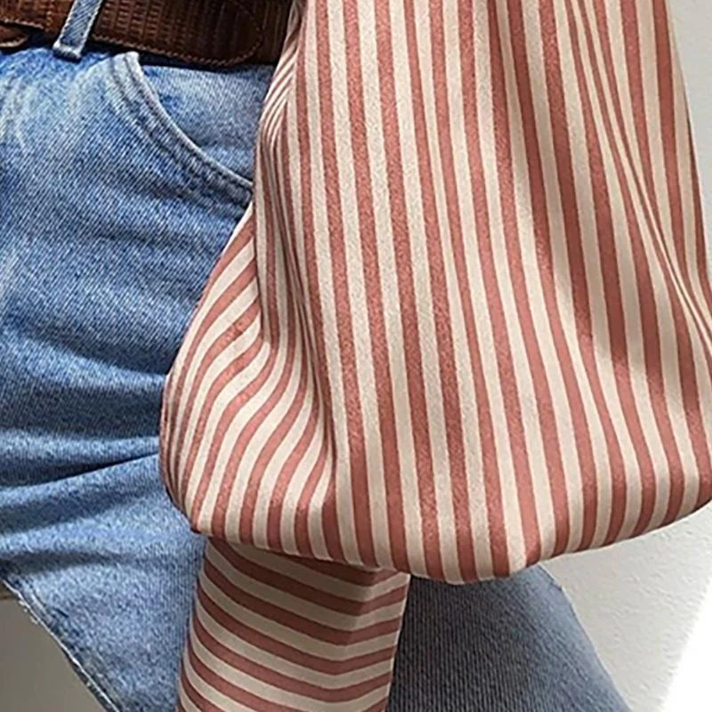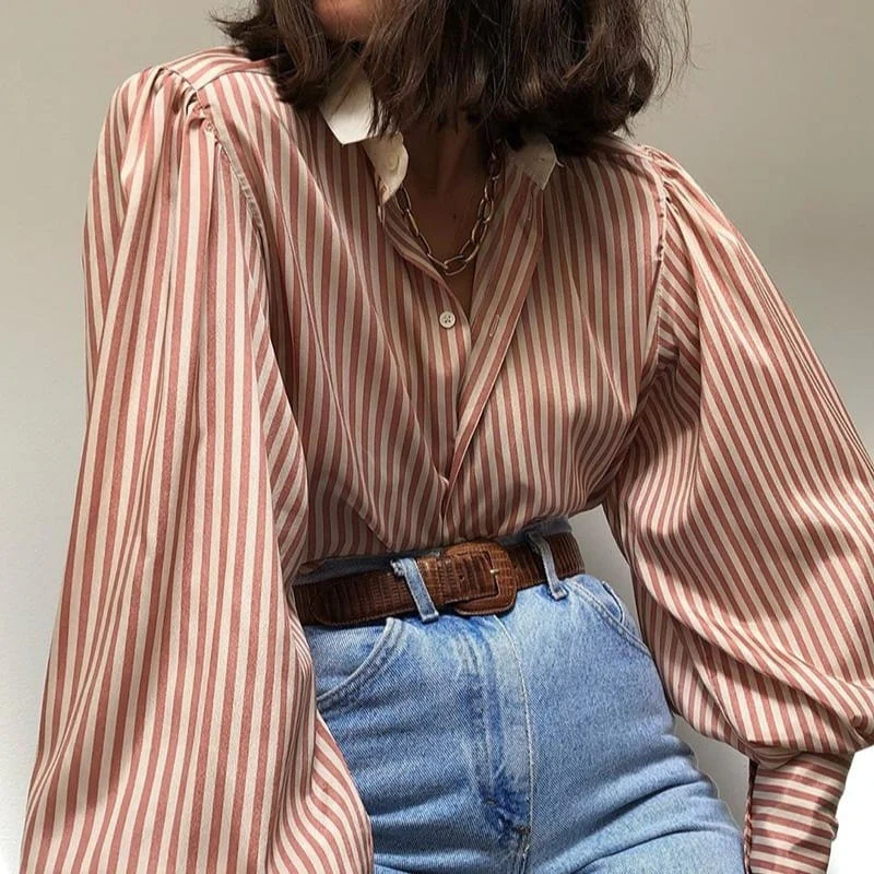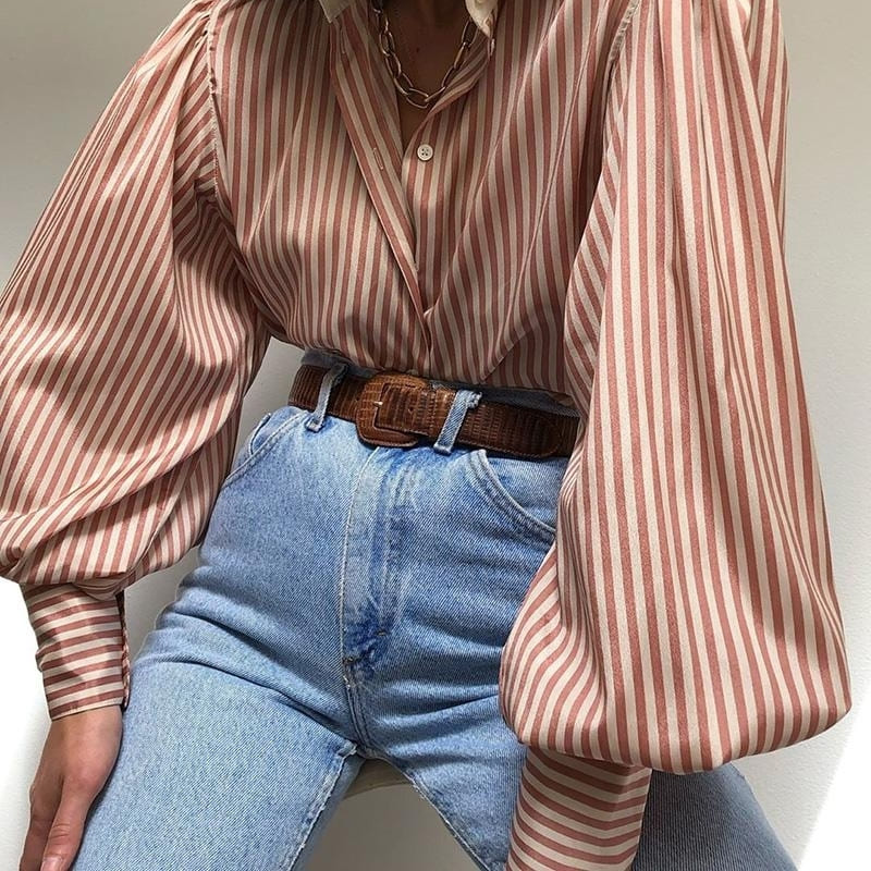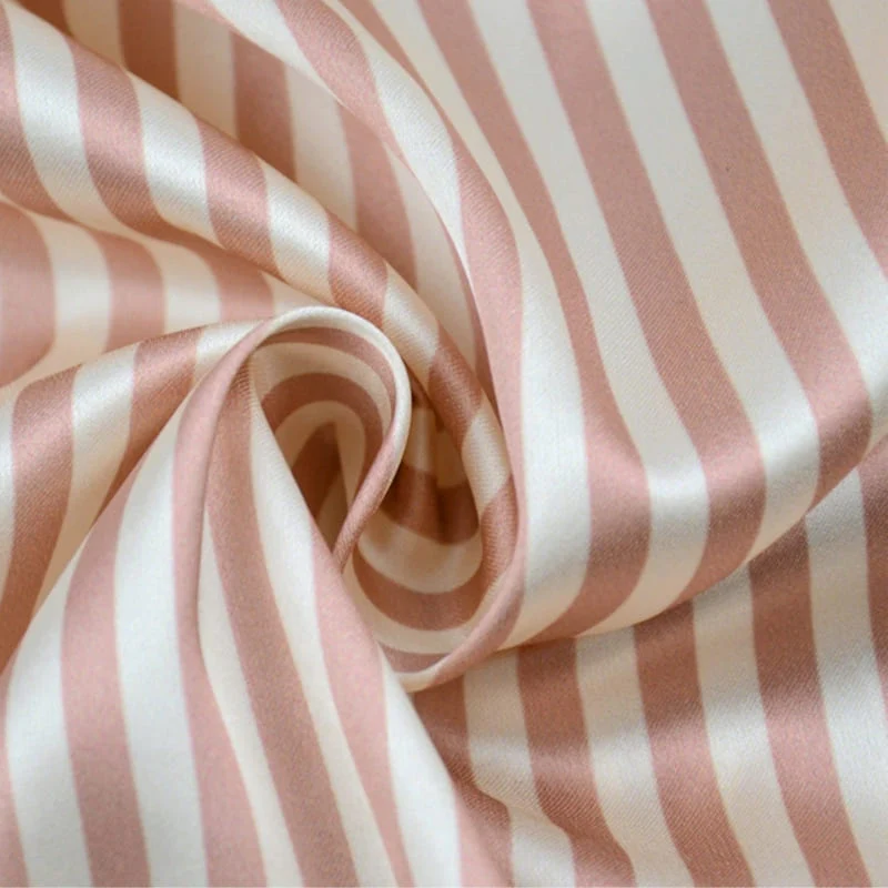 CHEMISIER EN SATIN À RAYURES ÉCRUES ET ROSE POUDRÉ