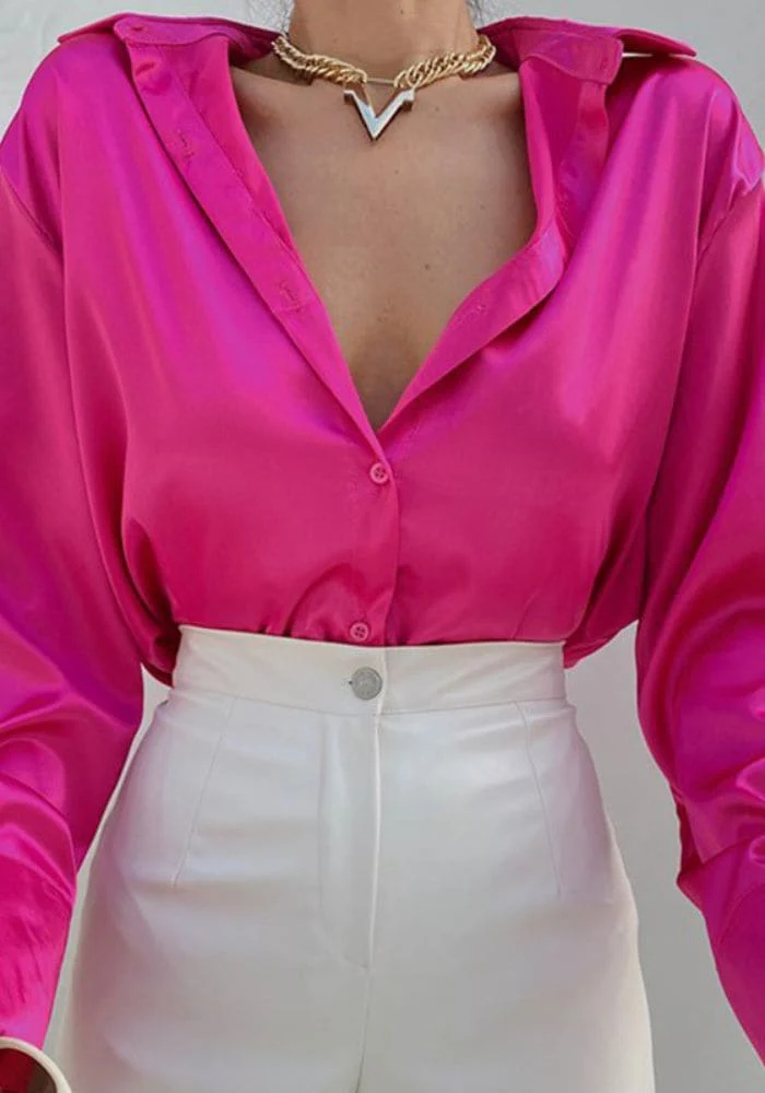 Chemisier en Satin élégant pour femme de couleur Rose Fuchsia