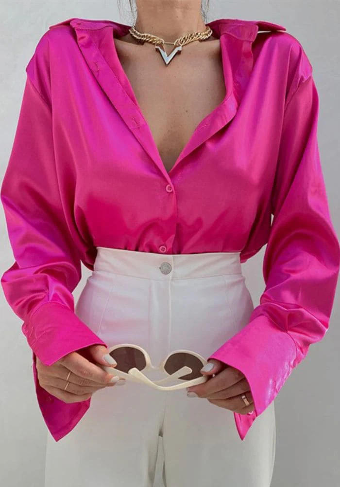 Donnez de la couleur à votre look grâce à ce sublime chemisier en satin ! Cette incroyable teinte rose fuchsia vous illuminera en un instant. Idéal à associer à des pièces de couleurs sobres pour donner du peps à votre tenue. La coupe classique à manches longues se mariera à la perfection à tous vos styles.