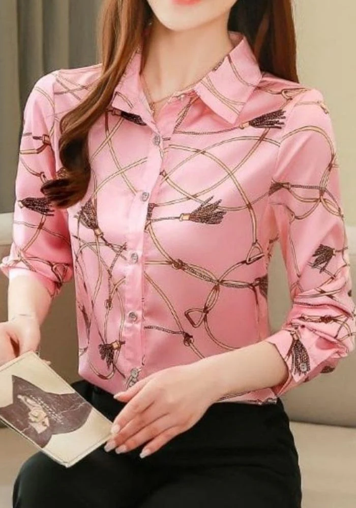 Ose l’originalité en portant ce beau chemisier en satin rose à motifs ! Avec sa belle couleur rose éclatante, ce chemisier donnera du peps à ton look. Son style imprimé foulard chaine est au top de la tendance. Sa coupe droite et ses manches longues sont facilement associables à n’importe quel pantalon ou jupe !