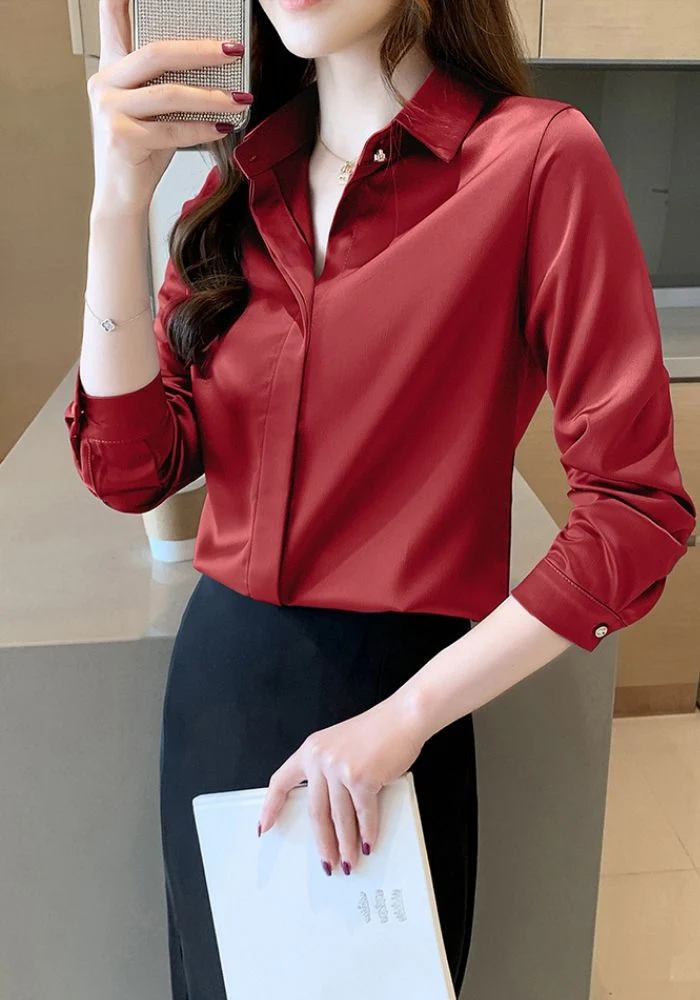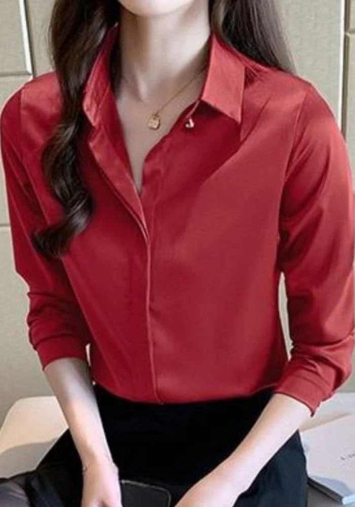 Chemisier en satin léger et fluide rouge