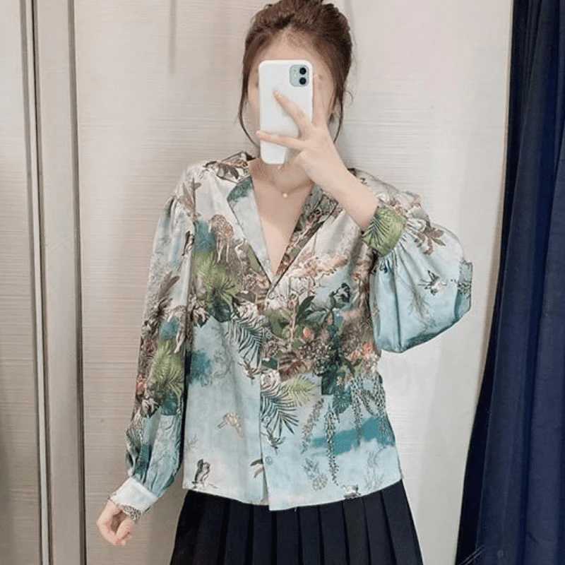 Apporte de l’originalité et de la couleur à ta tenue avec ce beau chemisier en satin ! L’imprimé tropical est l’indispensable pour une garde-robe au top ! Alors son style oversize et ses manches longues bouffantes, tu seras au top de la mode avec un look casual chic. Son col v donnera une touche de féminité en plus et dévoilera ton beau décolleté.