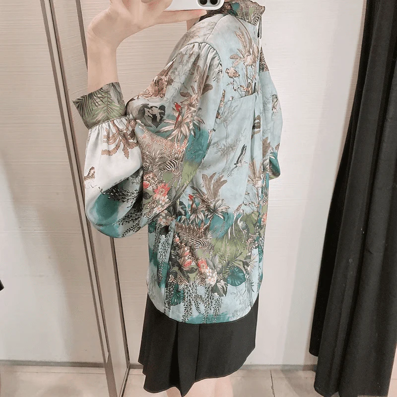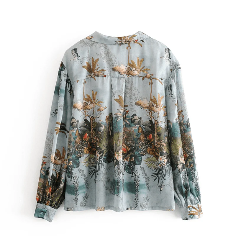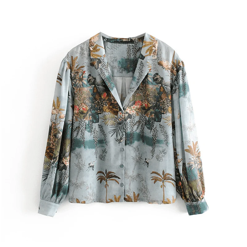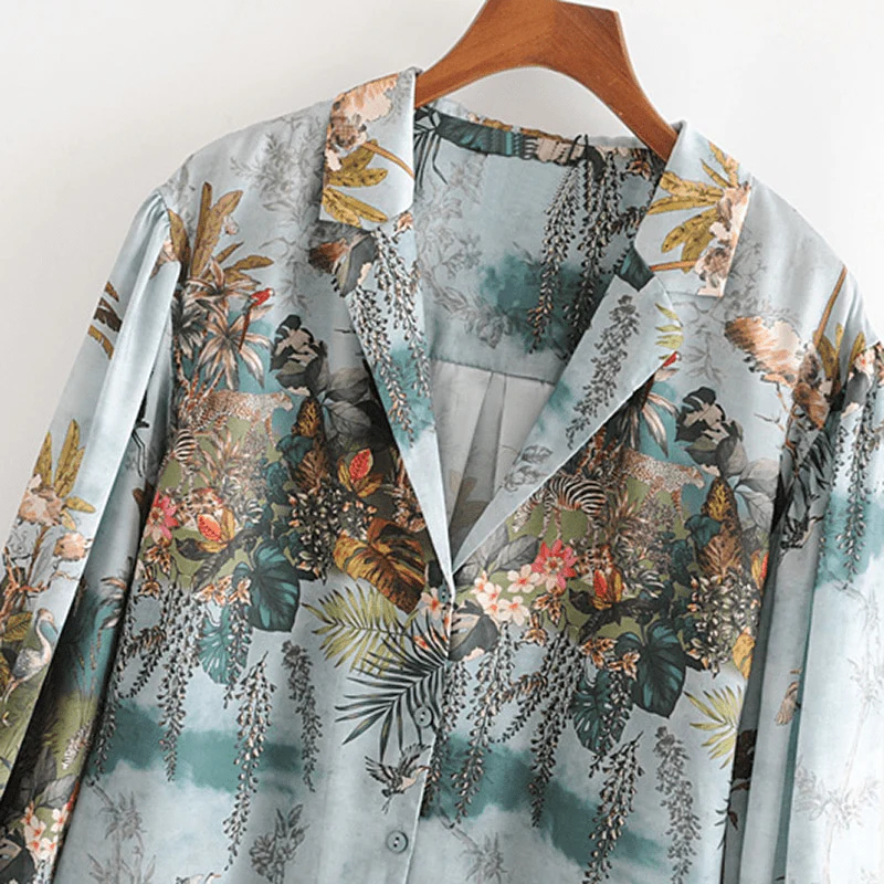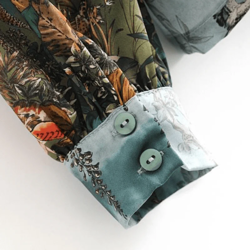 CHEMISIER EN SATIN IMPRIMÉ PAYSAGE TROPICAL