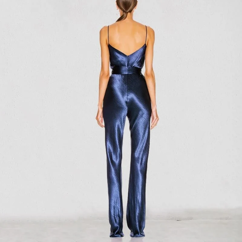 COMBINAISON EN SATIN NOUÉE À LA TAILLE COULEUR BLEU NUIT