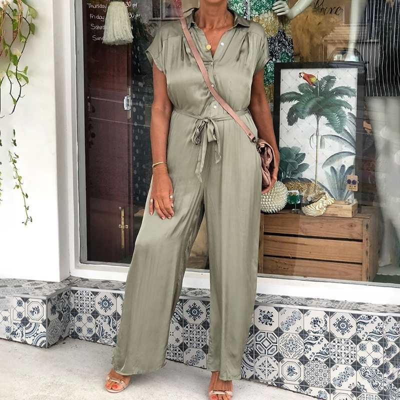 COMBINAISON EN SATIN KAKI À MANCHES COURTES