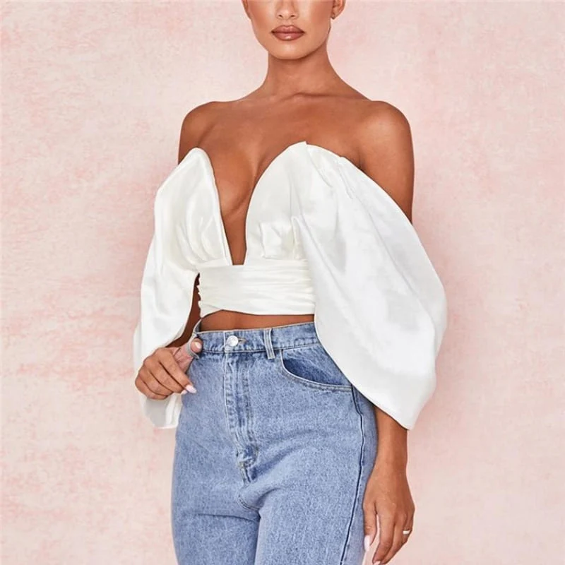 Tenue super sexy et élégante assurée avec cet éblouissant crop top en satin blanc ! On craque face à cette coupe super originale. Un bustier au décolleté super plongeant. Des manches longues tombantes. Et un gros noeud à nouer à l’arrière laissant paraître ton beau dos nu. Super stylé à porter avec un jean pour contraster différents styles.
