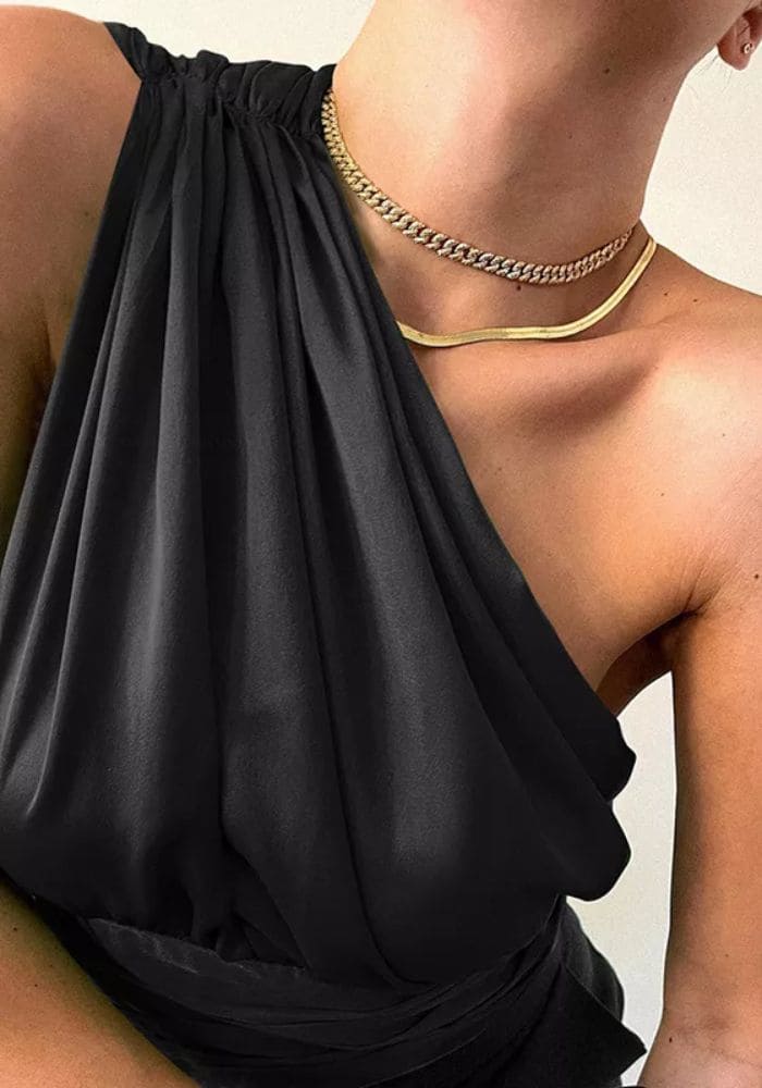 Crop Top en Satin noir coupe Asymétrique