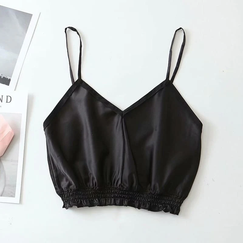 Tu veux un style simple tout en restant élégante ? Alors ce magnifique crop top en satin fera ton bonheur ! Ce tissu noir satiné est une merveille lorsque l’on veut être raffinée. Sa coupe classique à fines bretelles s’associe à tous les styles et autres vêtements. L’élastique placé au bas du top donnera un effet bouffant super stylé.