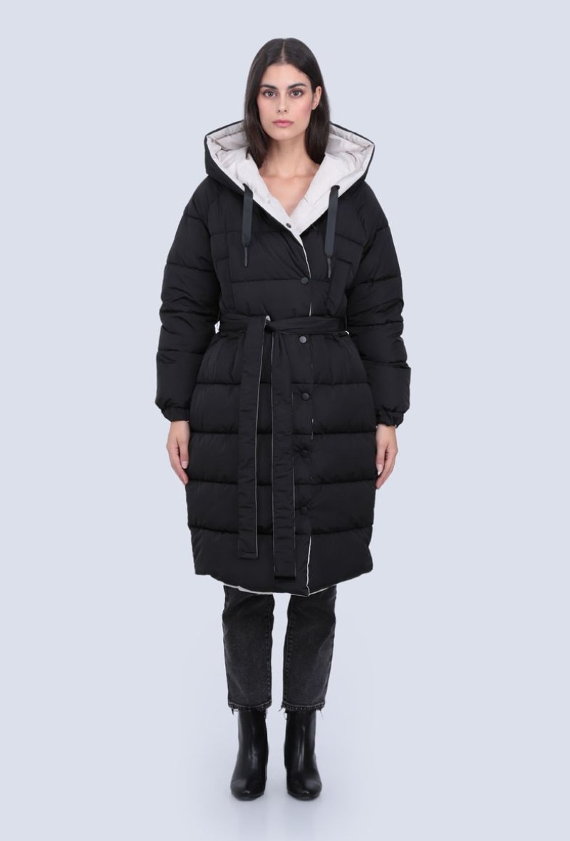 La doudoune réversible est fournie avec une ceinture qui est aussi réversible, offrant ainsi une grande polyvalence pour votre choix de style. La ceinture est idéale pour marquer votre taille.