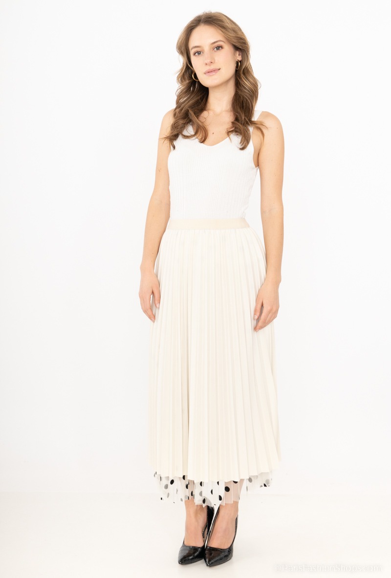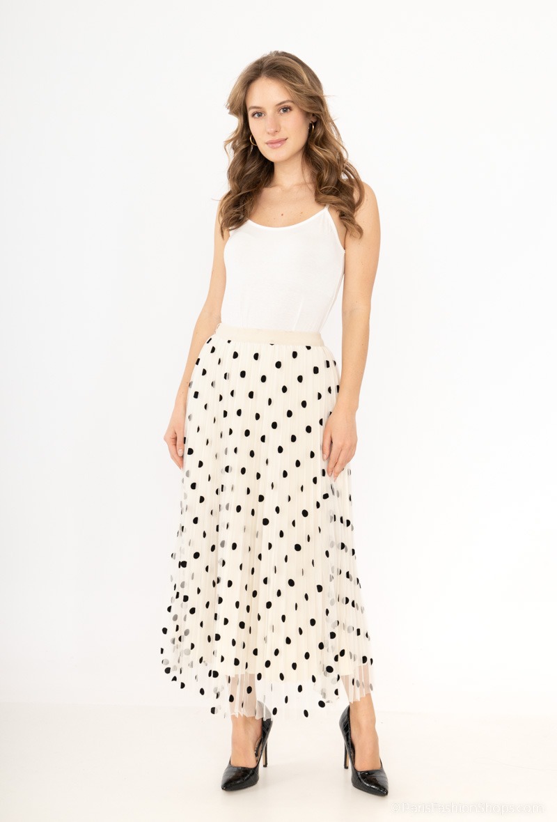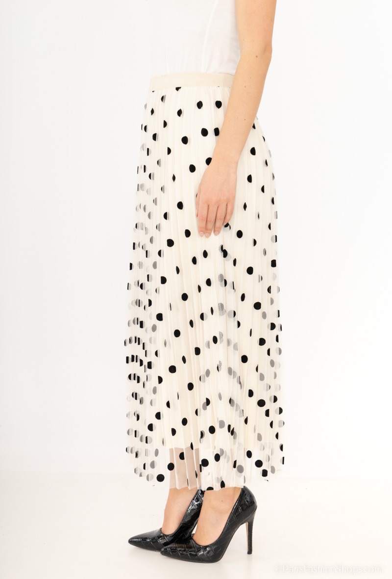 Elle tire son élégance de sa dentelle, sa couleur (écru) et sa longueur. Le petit pois floqué est un imprimé indémodable qui rend cette pièce féminine tendance et personnalisable.