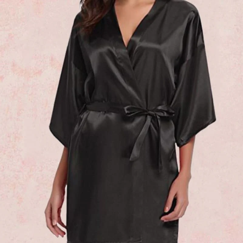 KIMONO EN SATIN DE COULEUR NOIR