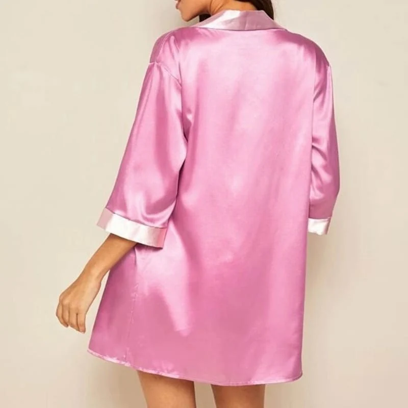 KIMONO EN SATIN DE COULEUR ROSE POUR FEMME