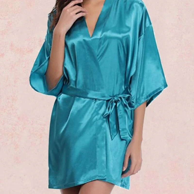 KIMONO EN SATIN DE COULEUR TURQUOISE