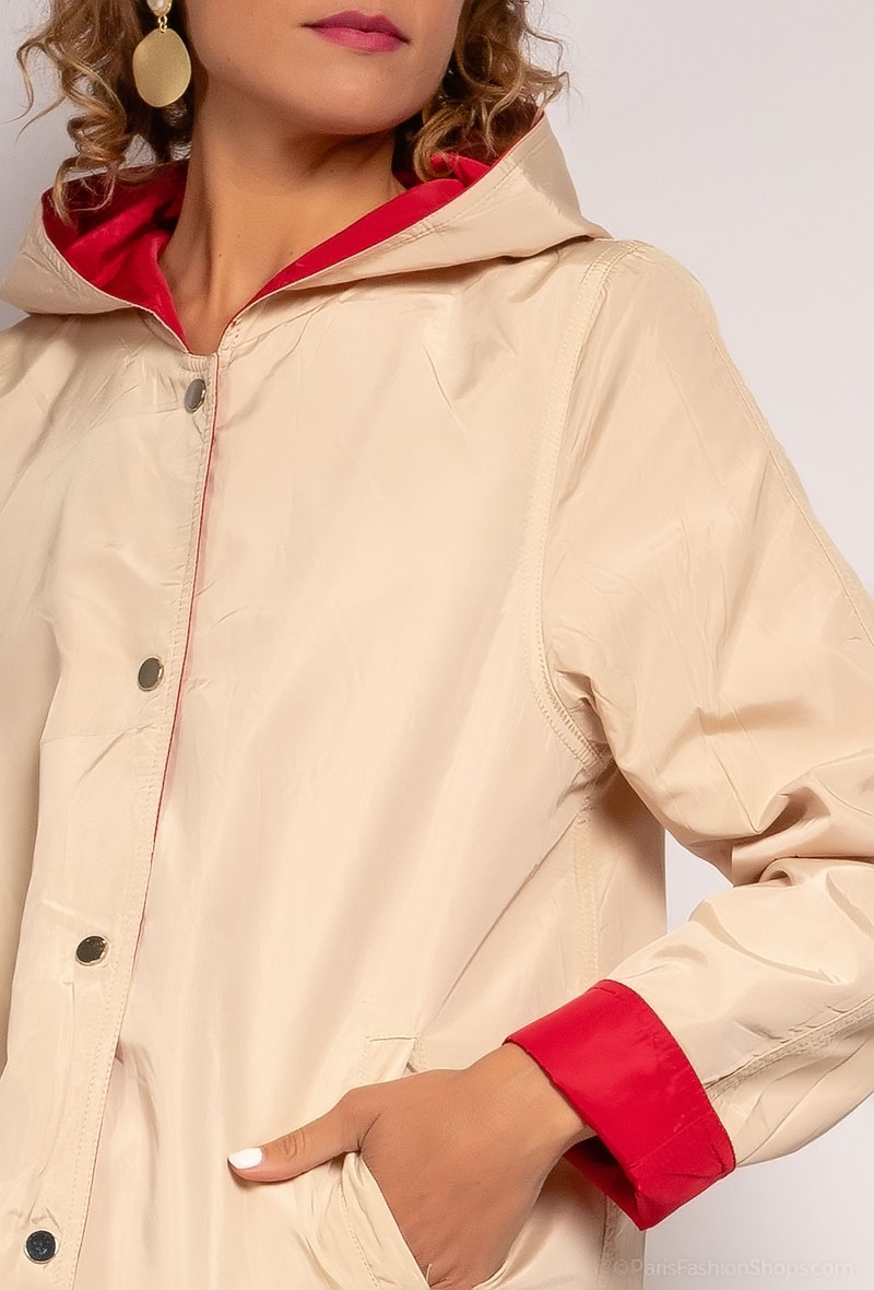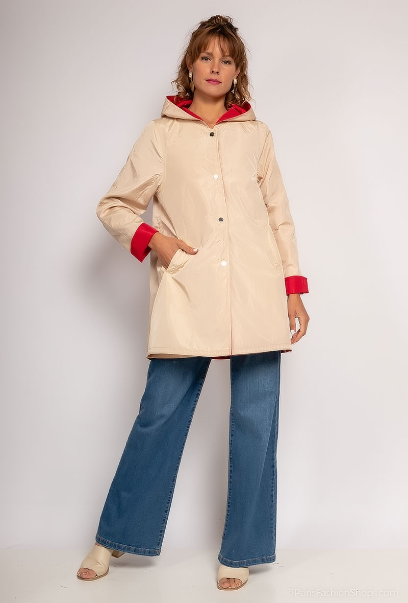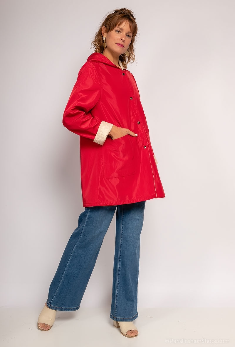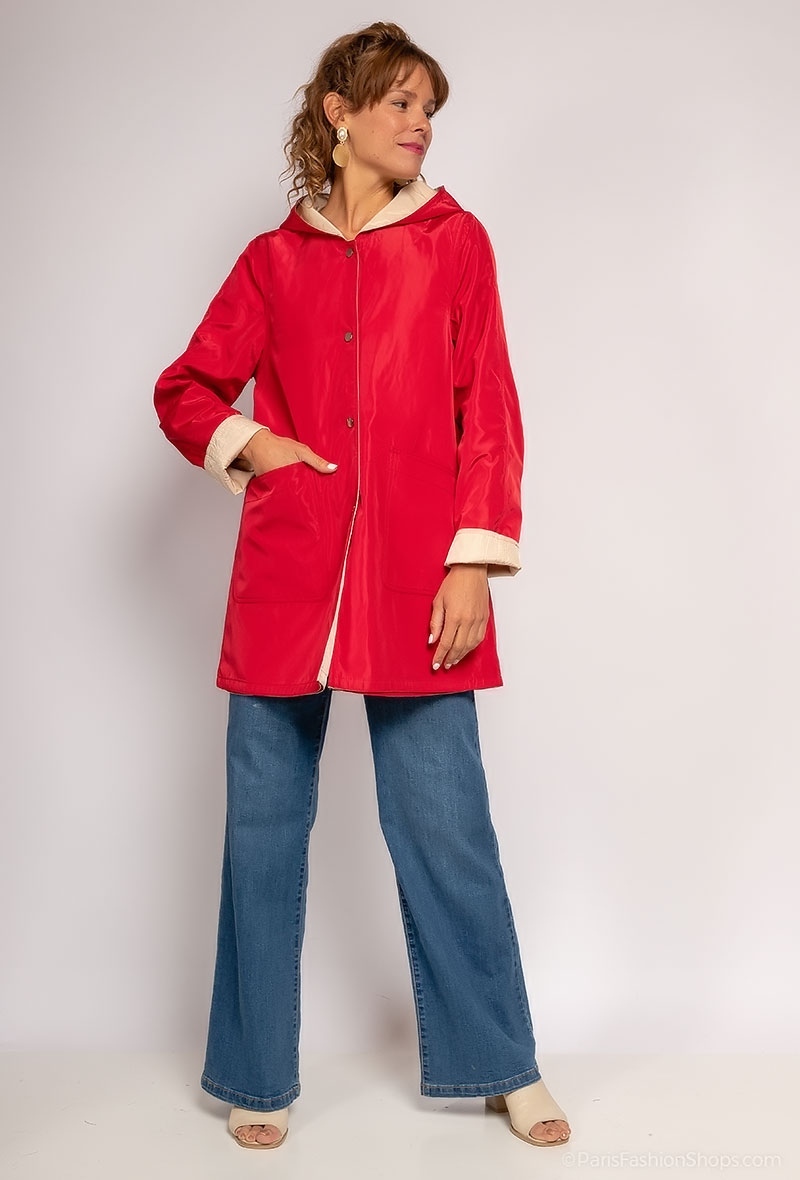 Parka Réversible Femme Imperméable – Rouge