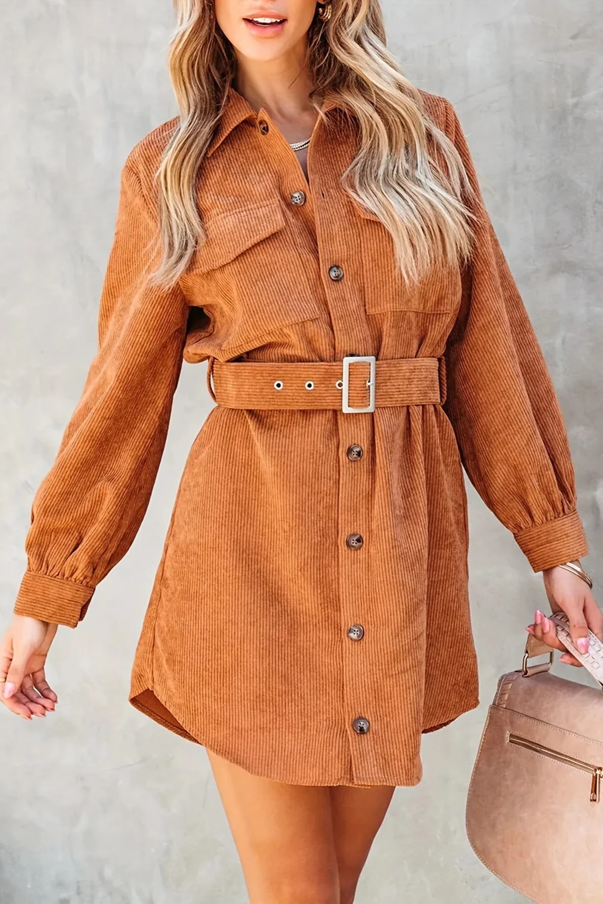 - 👑 Un look royal : La robe chemise en velours cotelé te donne une allure de reine moderne, prête à conquérir le monde.