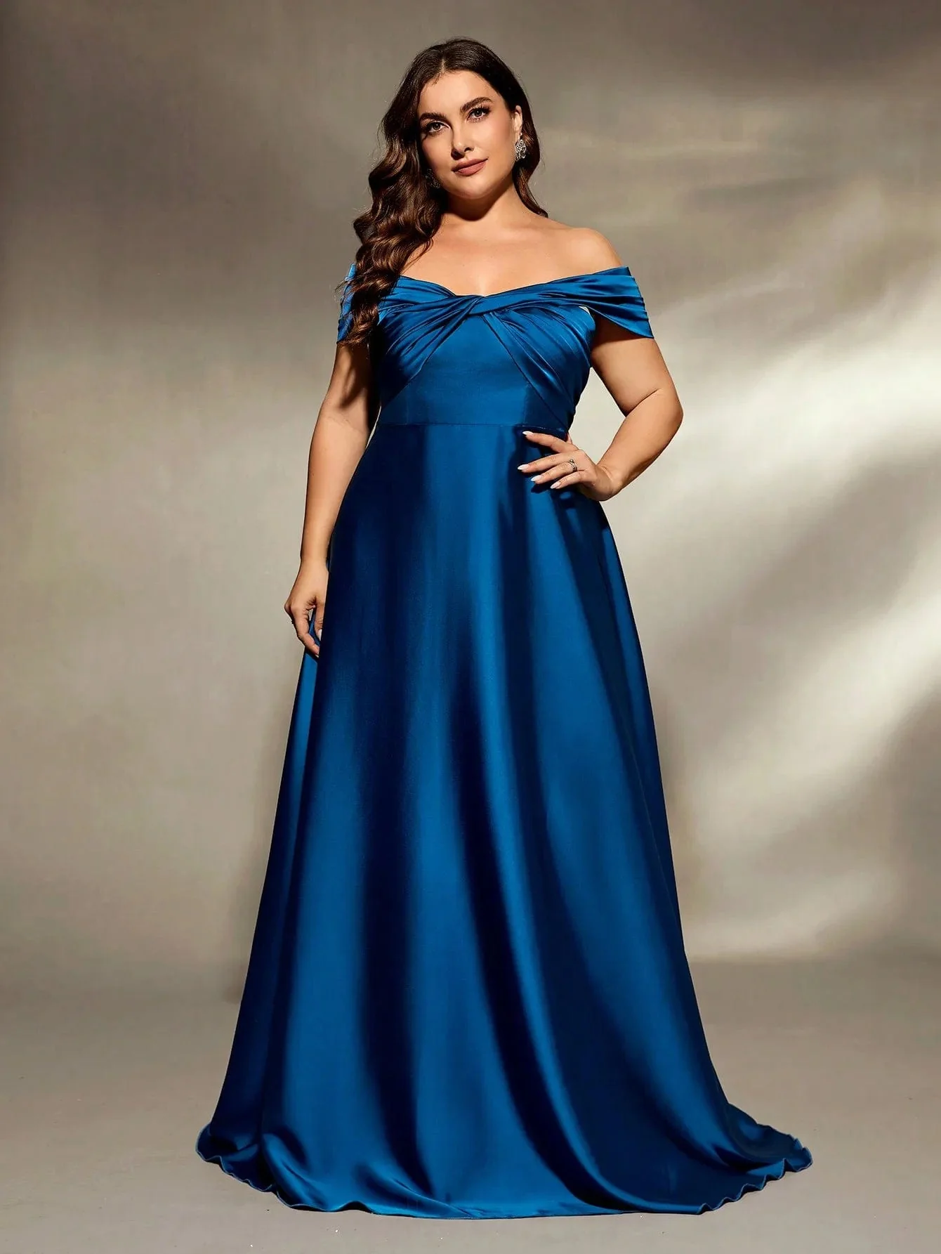 Élégance intemporelle avec la robe de soirée grande taille en satin bleu