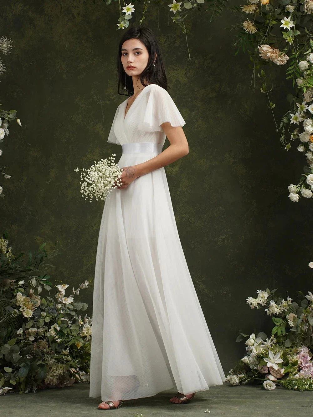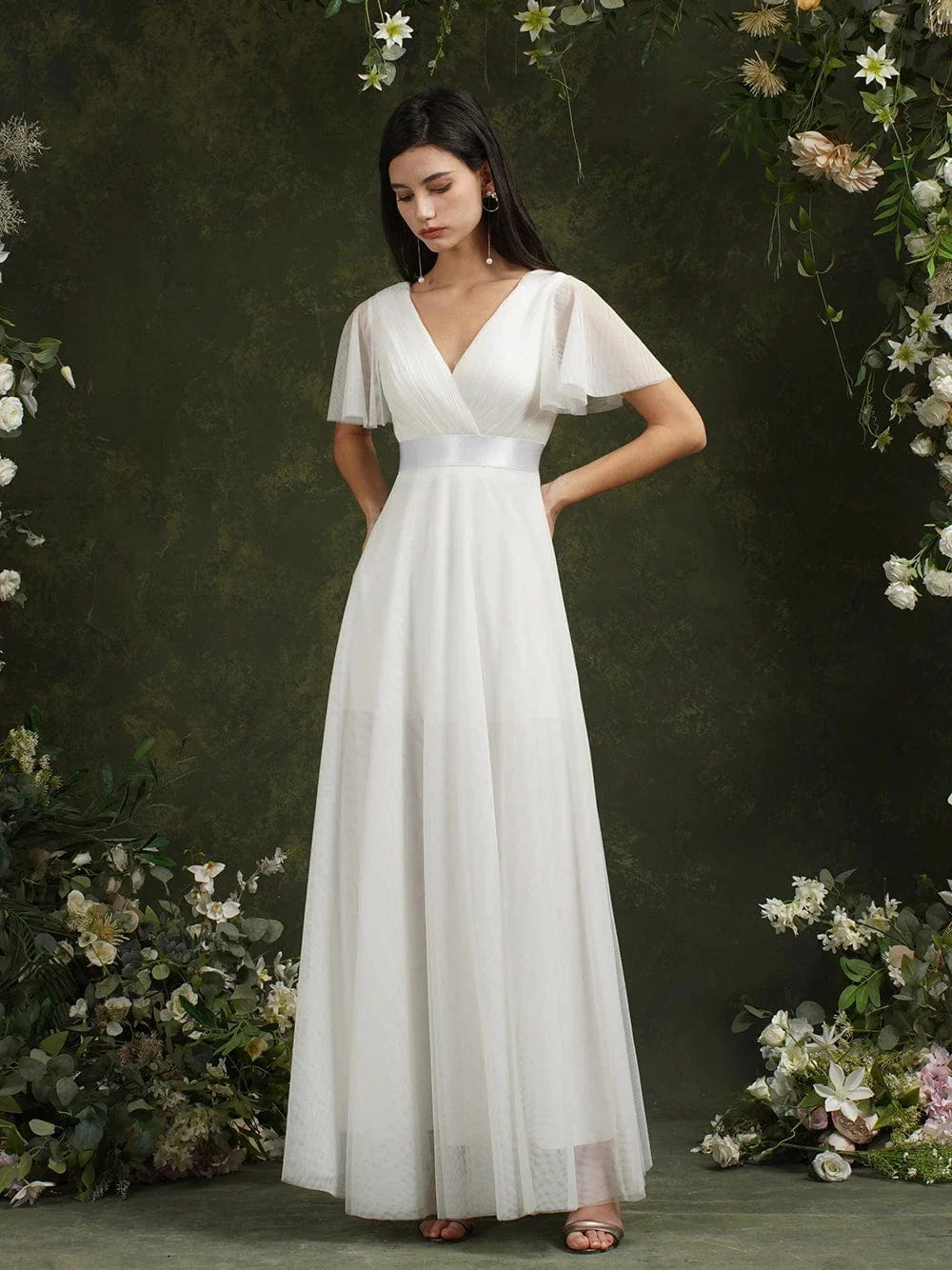 Idéale pour sublimer votre silhouette lors d’un mariage, cette robe demoiselle d’honneur chic blanche allie grâce et sophistication. Confectionnée en chiffon, elle offre une fluidité incomparable et un tombé aérien digne des plus belles robes haute couture. Son décolleté en V flatte toutes les morphologies tandis que sa coupe évasée affine la silhouette avec élégance. Manches courtes et taille empire, elle offre un confort absolu du matin au soir. Pour une touche mode inédite, associez cette robe avec une paire de sandales à brides délicates et une pochette minimaliste. Parfaite pour un mariage romantique ou bohème, elle fera de vous une invitée éclatante. Offrez-vous cette robe et marquez les esprits avec une allure aussi gracieuse qu’intemporelle.