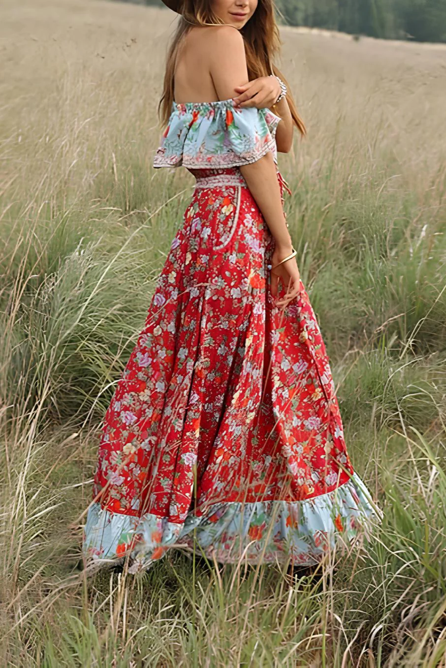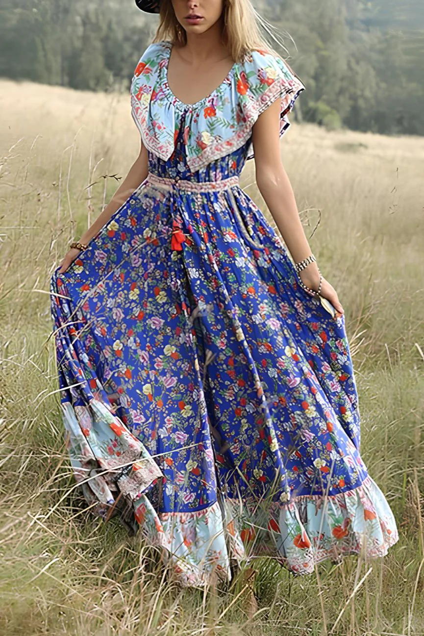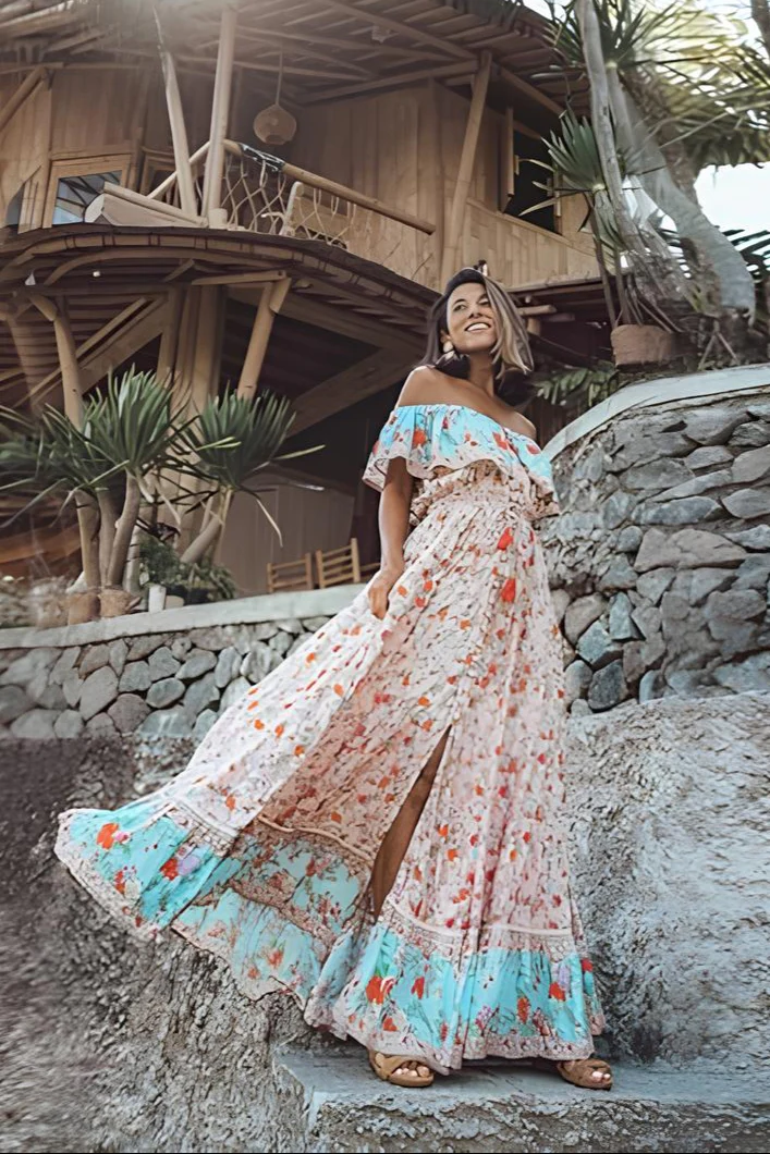 Imagine-toi traversant une prairie fleurie, les rayons du soleil jouant avec les motifs colorés de ta robe. Tu es le centre de toutes les attentions, une vision de beauté et de grâce, une véritable muse bohème.