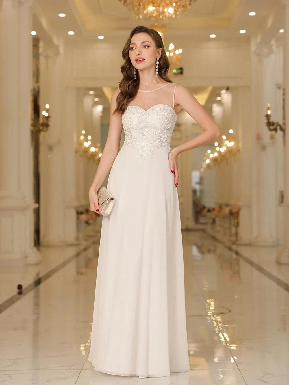 Laissez-vous séduire par l’élégance intemporelle de cette robe invitée de mariage longue élégante. Confectionnée en chiffon fluide, elle sublime la silhouette grâce à sa coupe A-line aérienne et son décolleté O-neck délicat. Son design sans manches met en valeur les épaules avec finesse, tandis que son appliqué raffiné apporte une touche de sophistication. Idéale pour un mariage, une cérémonie ou un gala, elle incarne le parfait équilibre entre modernité et allure vintage. Associez-la à des accessoires dorés et une élégante pochette pour un look irrésistible. Son bustier intégré assure un maintien impeccable, pour une élégance qui dure du jour à la nuit. Une pièce incontournable pour briller avec grâce lors de vos événements mémorables.
