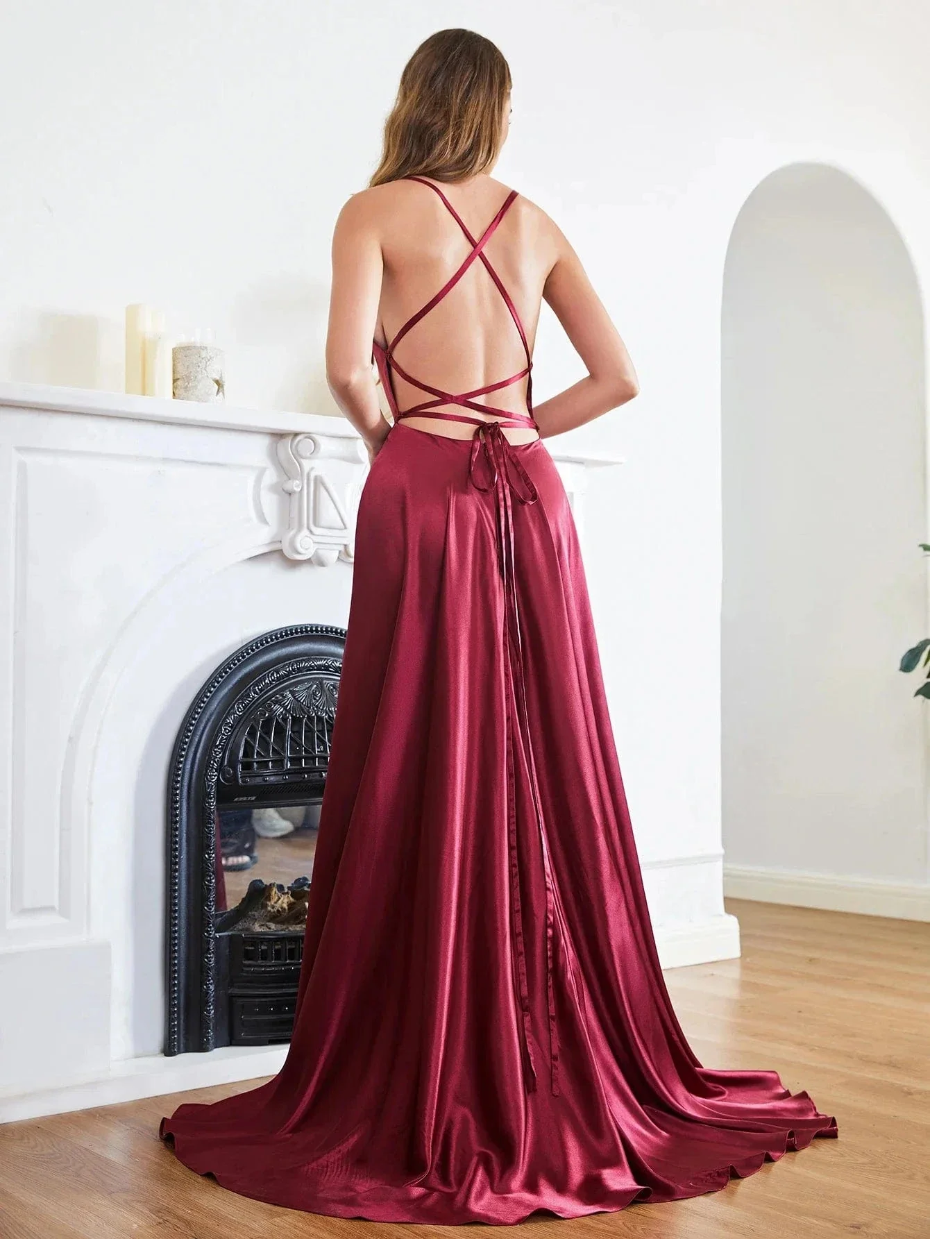 - Dos nu et bretelles spaghetti pour une allure élégante et séduisante.