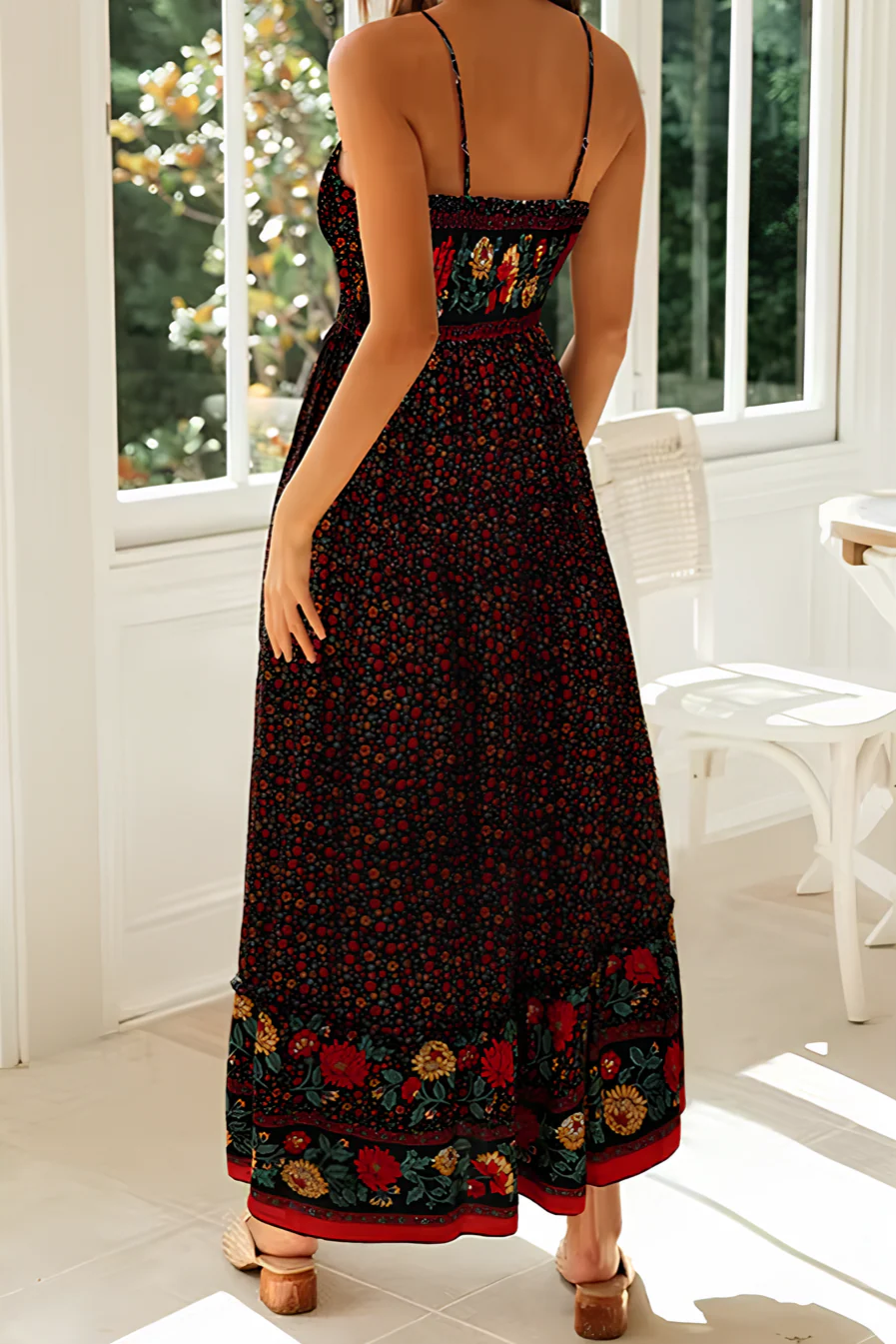 Imagine-toi, Robe longue empire bohème virevoltant autour de toi, te donnant une allure à la fois mystérieuse et irrésistible. Tu es à un festival de musique, le soleil se couche, la musique te transporte, et ta robe… elle, elle danse avec toi.
