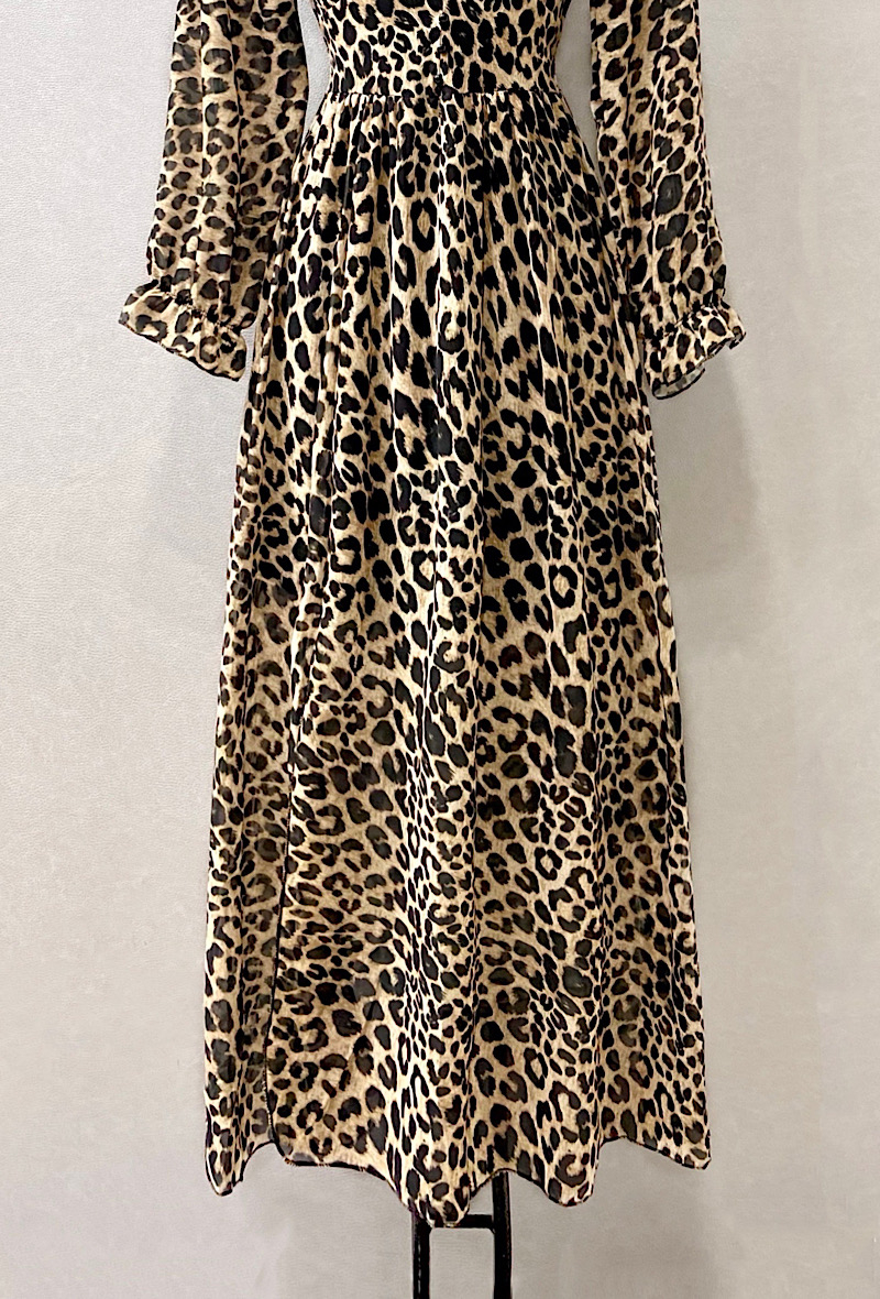 Adoptez cette robe longue fluide à imprimé léopard avec fente pour un look féminin, audacieux et ultra-moderne, idéal pour toutes les saisons.
