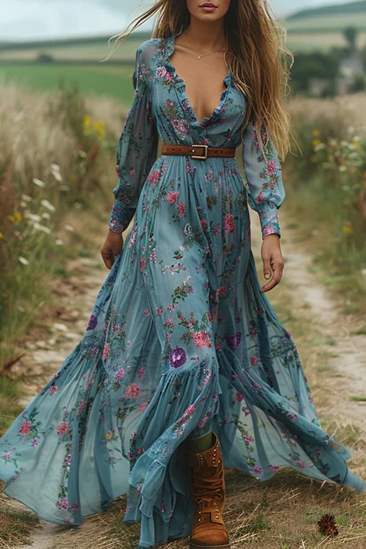 Fais de chaque moment un instant mémorable avec la Robe longue mousseline fleurie