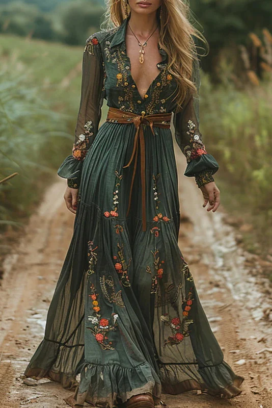 Transforme-toi en déesse de la nature avec notre Robe longue mousseline fleurie