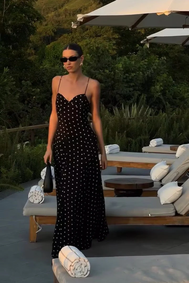 La Robe noire pois blanc n’est pas seulement une robe, c’est une déclaration de style. Une pièce qui te fait sentir belle, confiante et prête à affronter n’importe quelle situation avec grâce et élégance.
