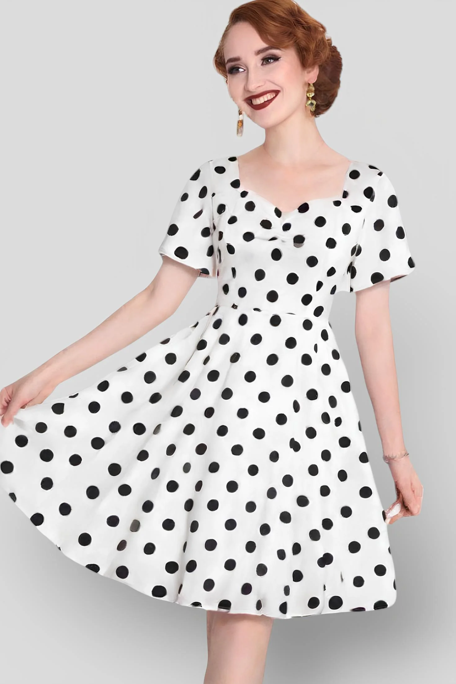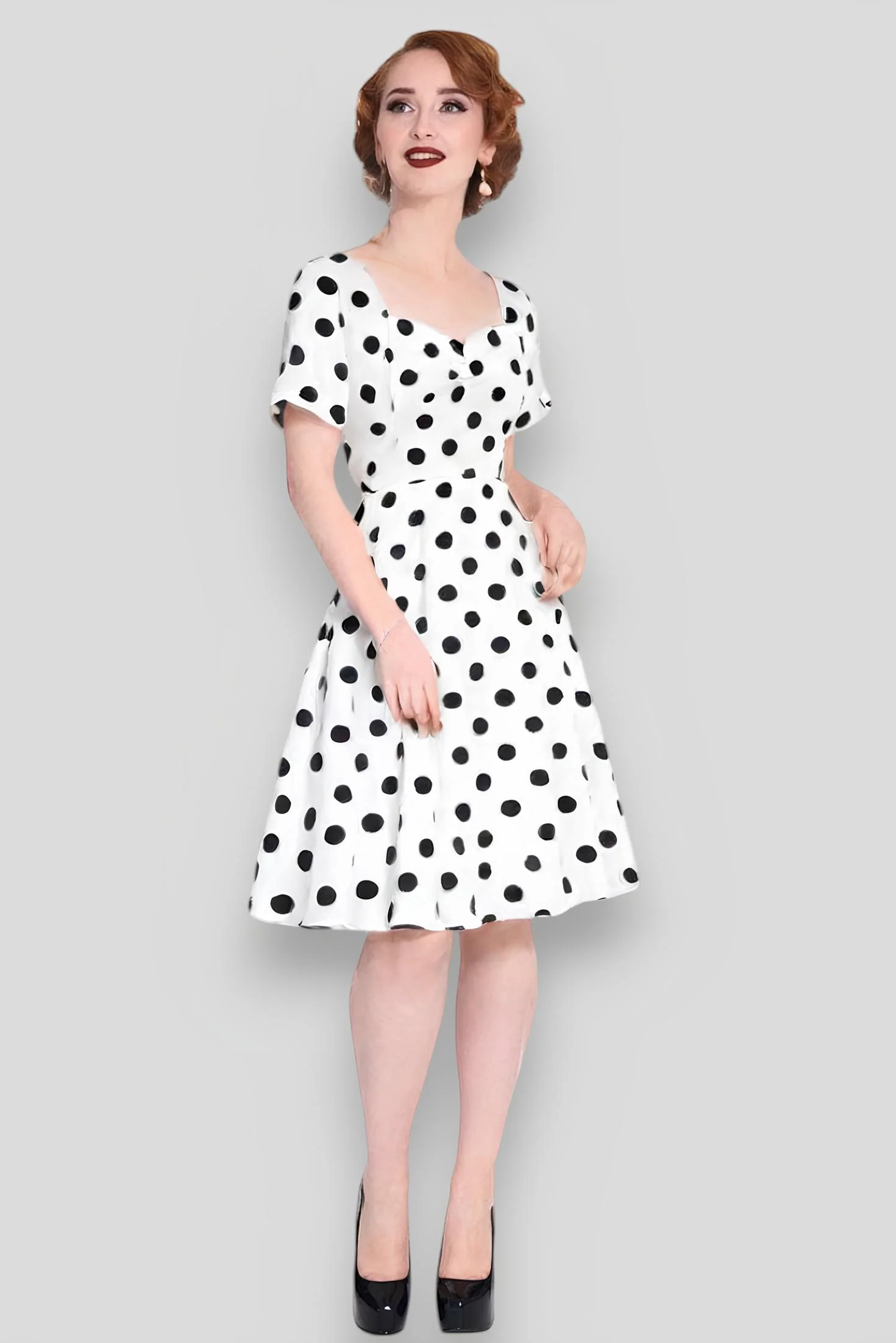 Imagine-toi, Robe Pin Up Blanche virevoltant autour de ta silhouette, dans une soirée cocktail rétro. Les flashs des appareils photo crépitent, les regards s’arrêtent sur toi, éblouis par ton style vintage chic. Tu es la star de la soirée, une icône de la mode qui a su réinventer le glamour des années 50.