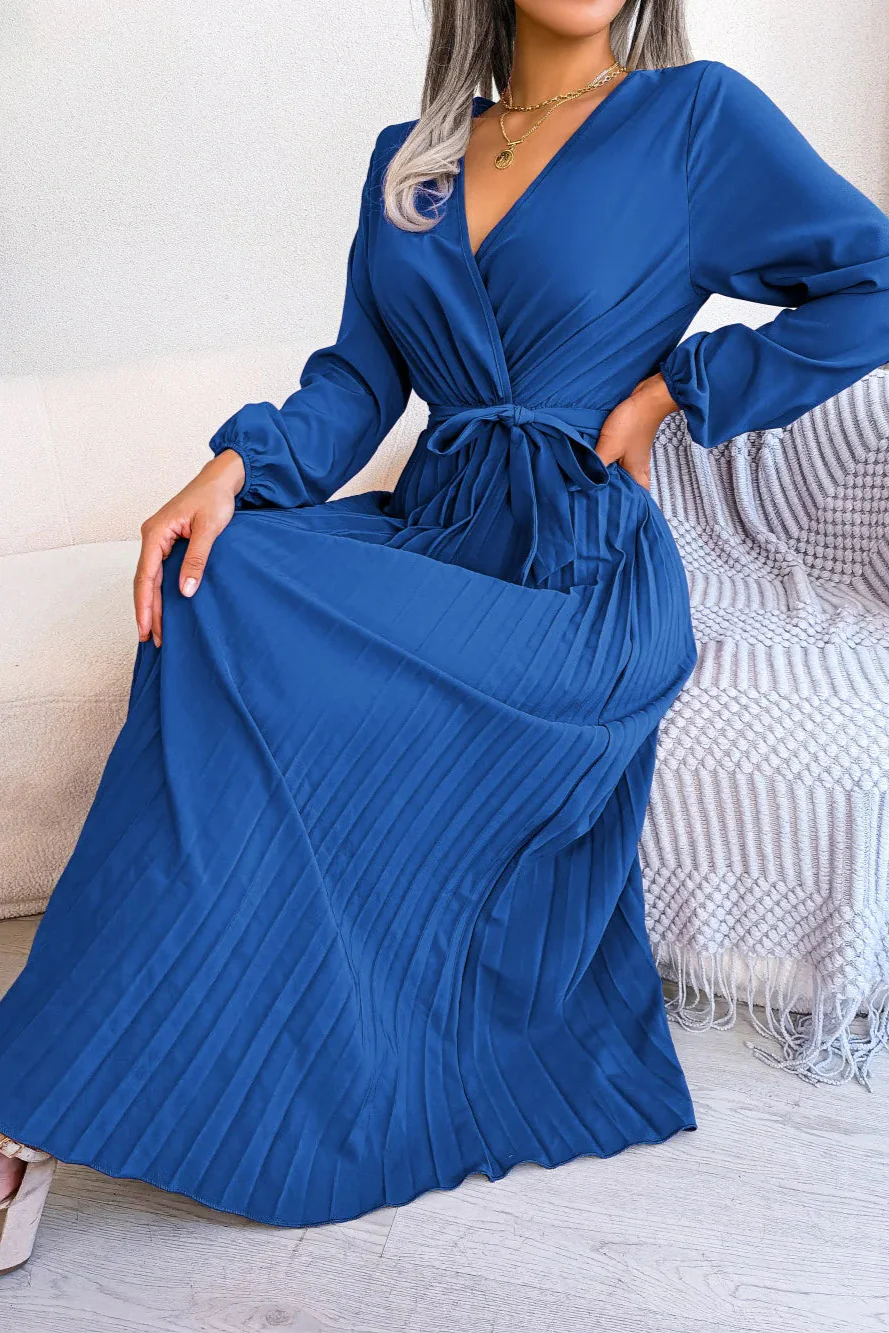 - 👗Elégance intemporelle : La Robe plissée bleue est synonyme de sophistication et de classe.