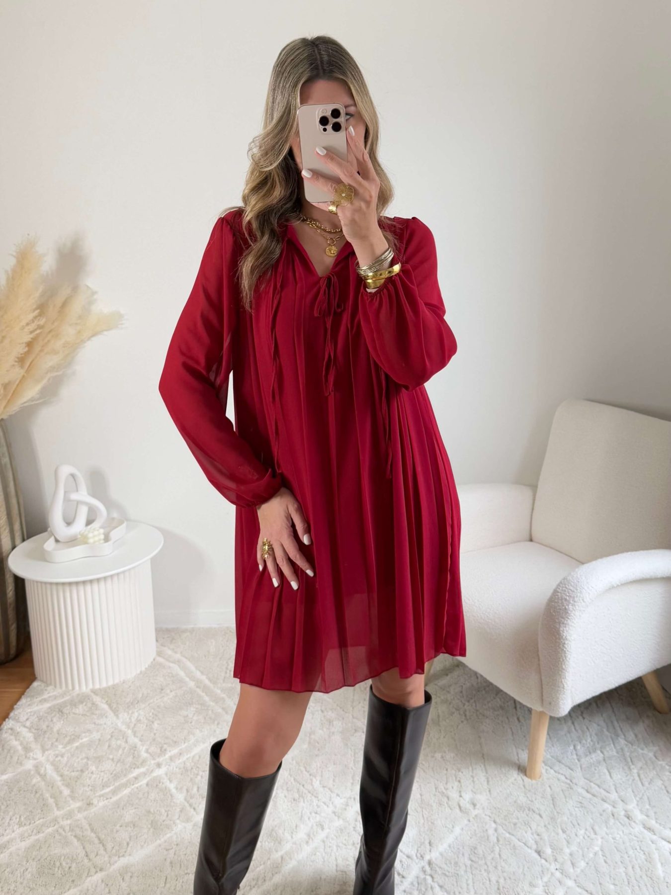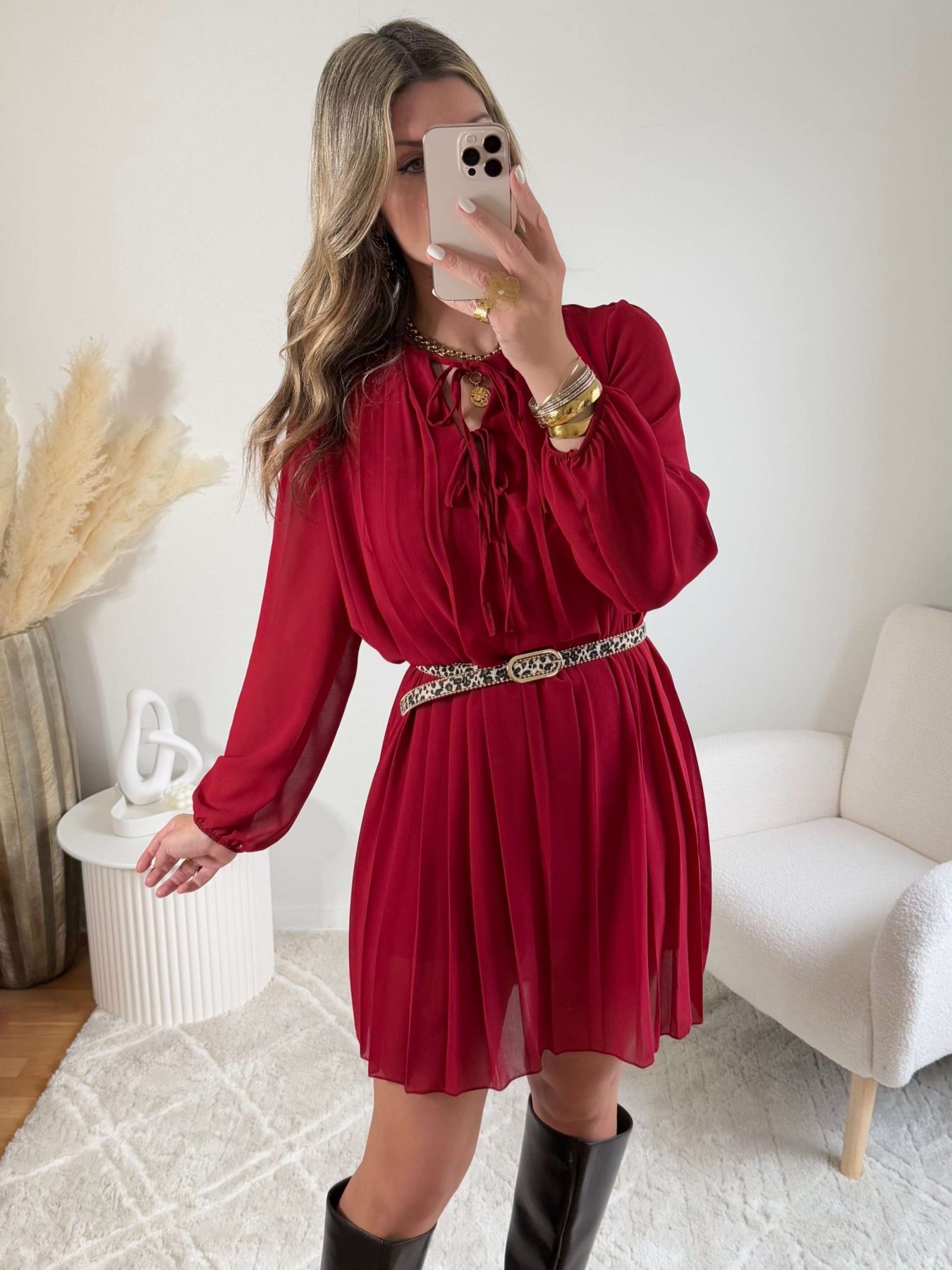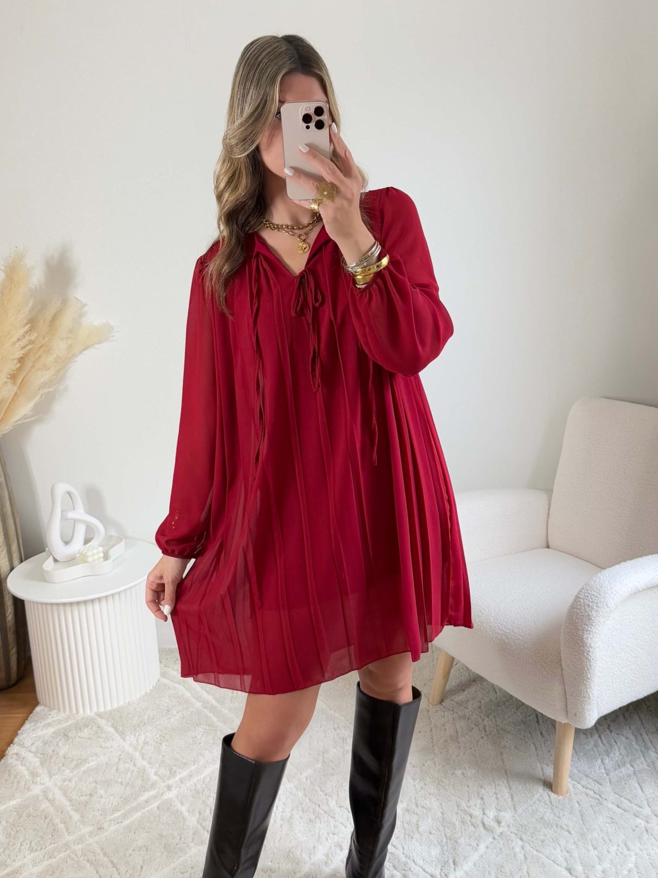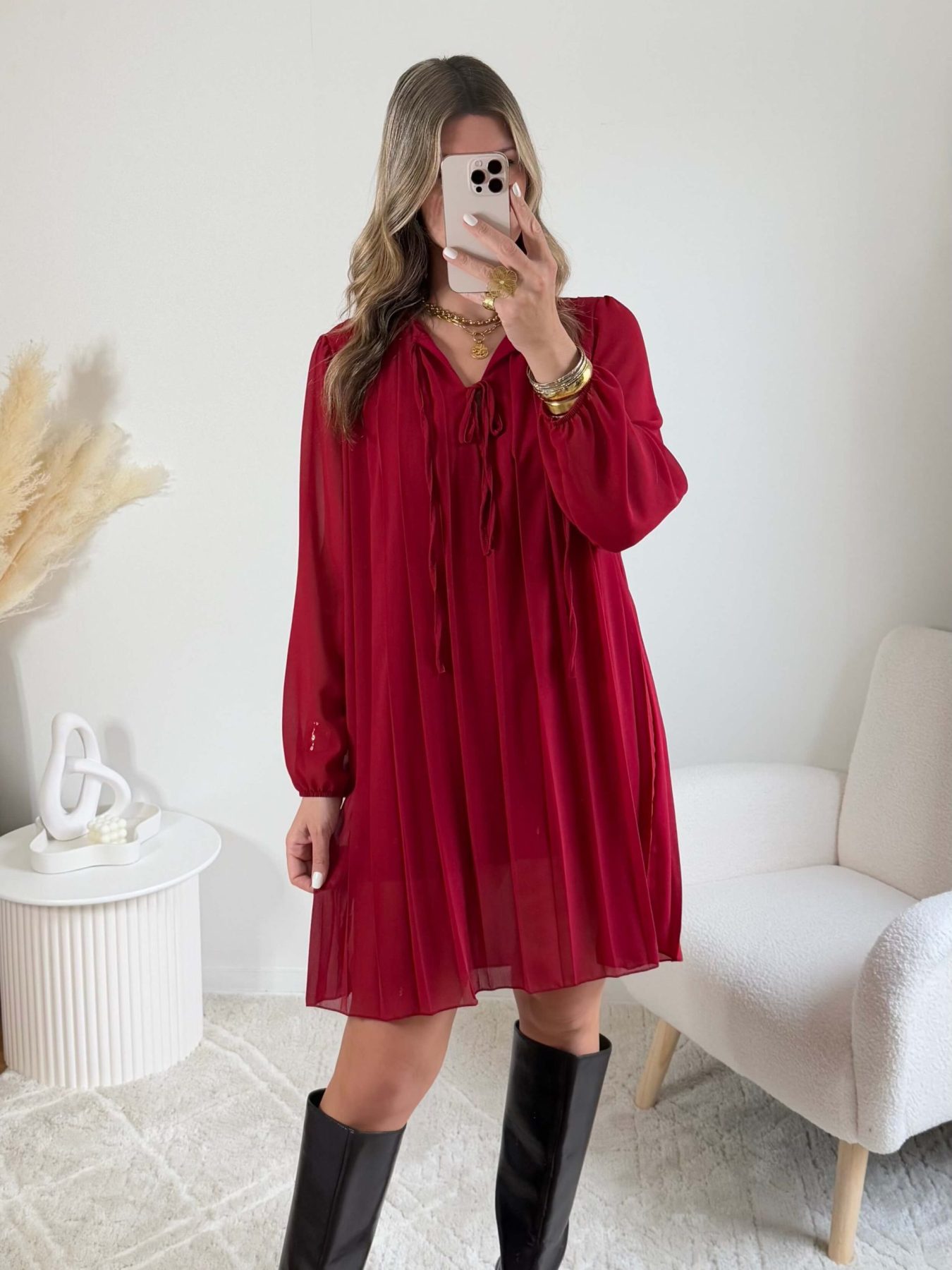 Robe plissée bordeaux – Bonnie