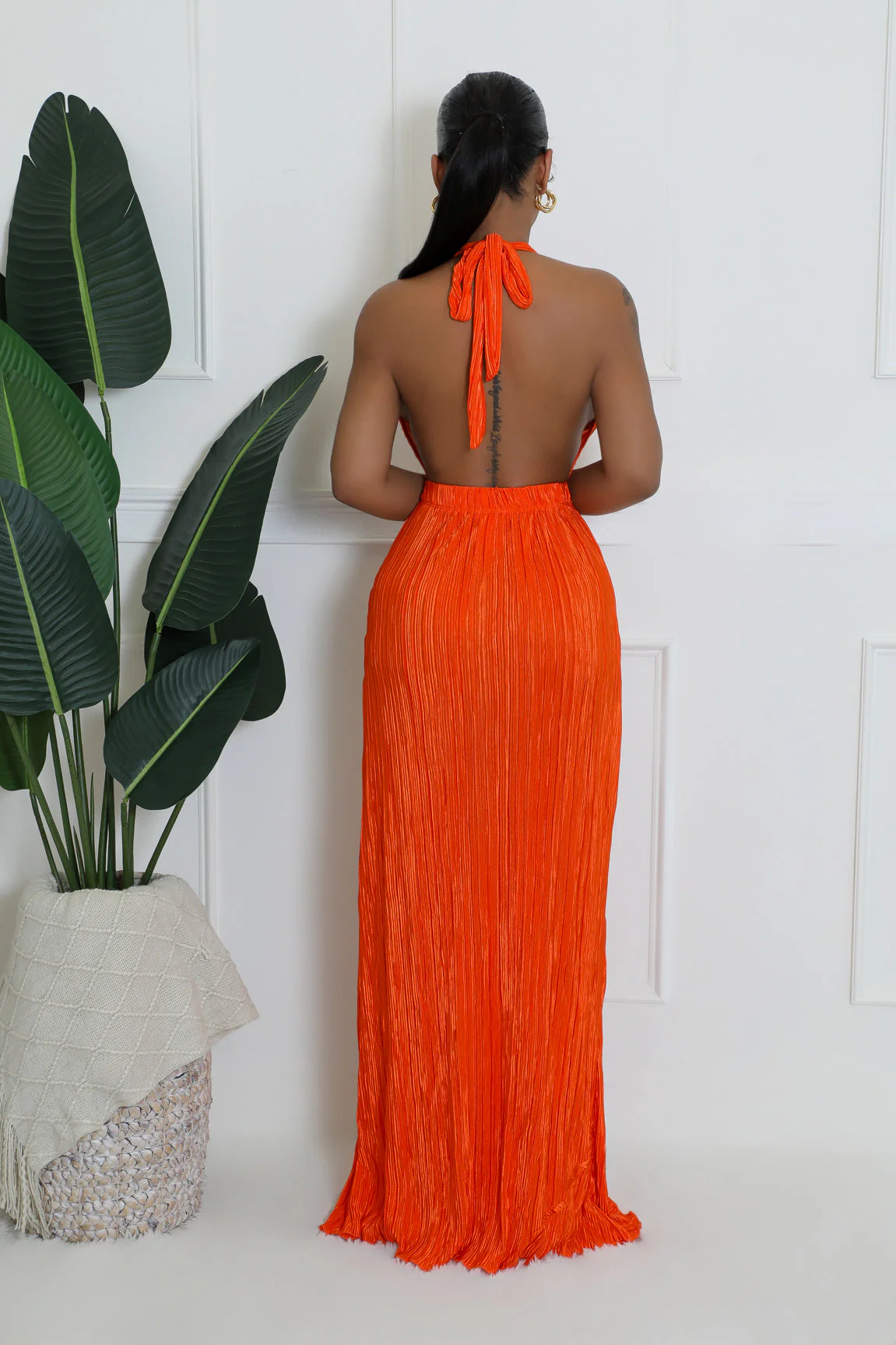 Ne laisse pas cette occasion de briller te filer entre les doigts. Fais de chaque moment un instant spécial avec la robe plissée orange. Sois audacieuse, sois toi-même, sois inoubliable. C’est ton moment, saisis-le !