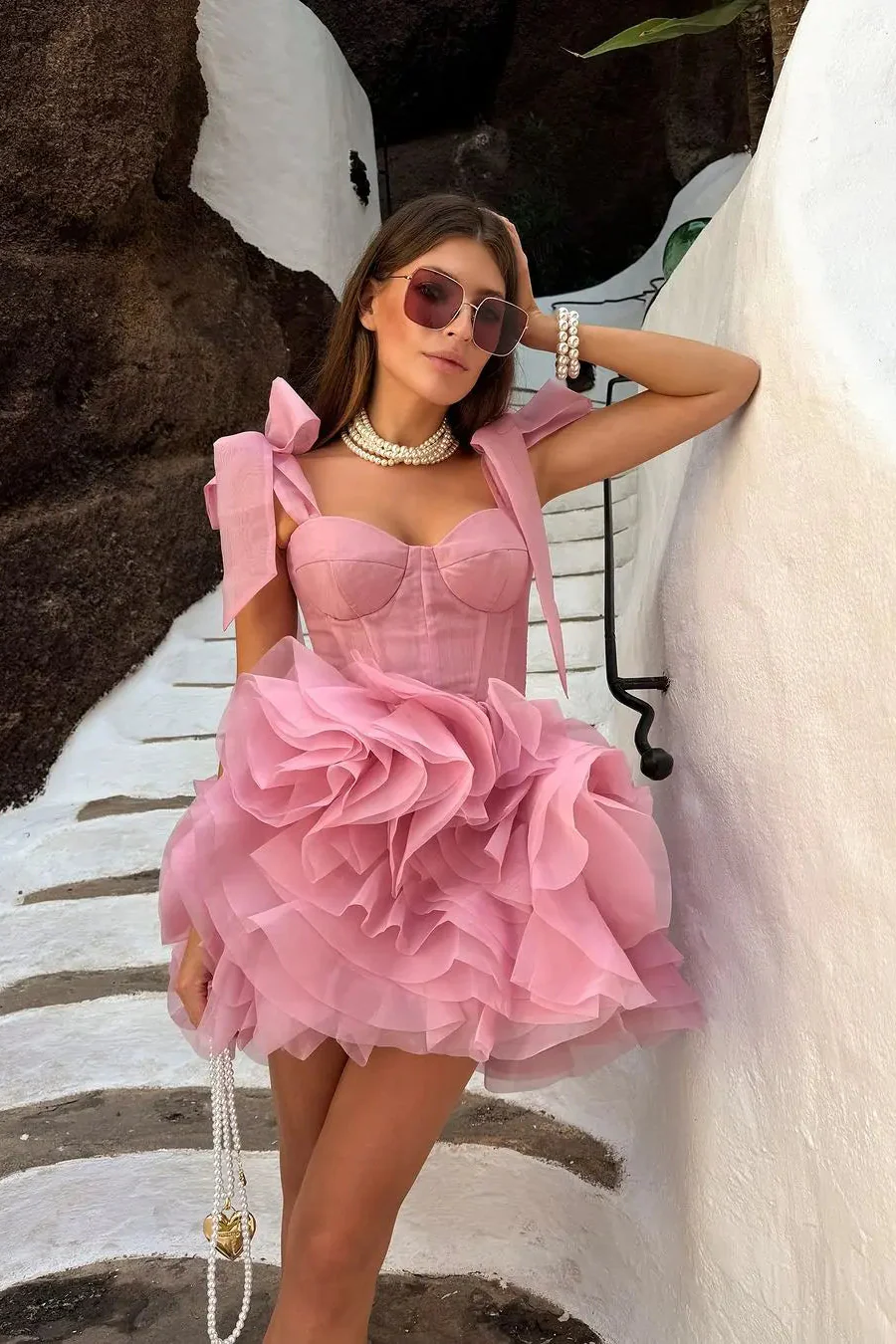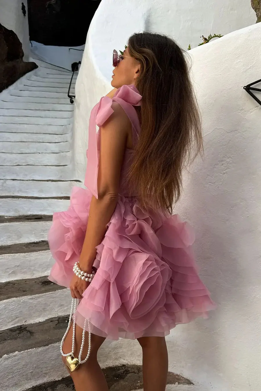 Imagine-toi marchant dans les rues de Paris, le vent légèrement frais caressant ton visage, les rayons du soleil illuminant ta robe rose noeud. Chaque pas que tu fais, chaque mouvement que tu fais, ta robe danse avec toi, créant une symphonie de style et de grâce.