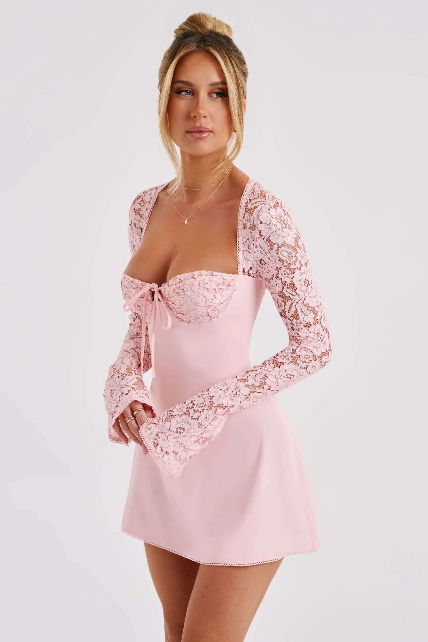 Porter cette robe rose poudré dentelle est une expérience en soi. Elle te fait sentir belle, puissante et prête à conquérir le monde.
