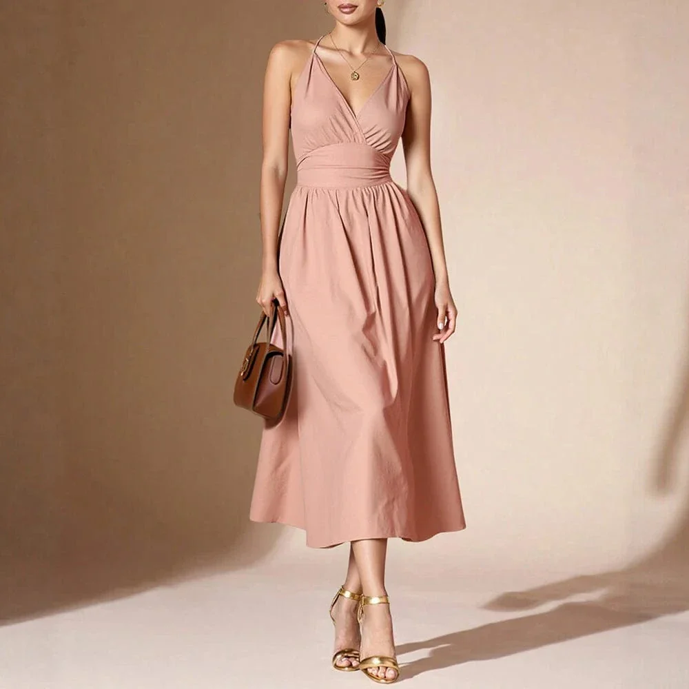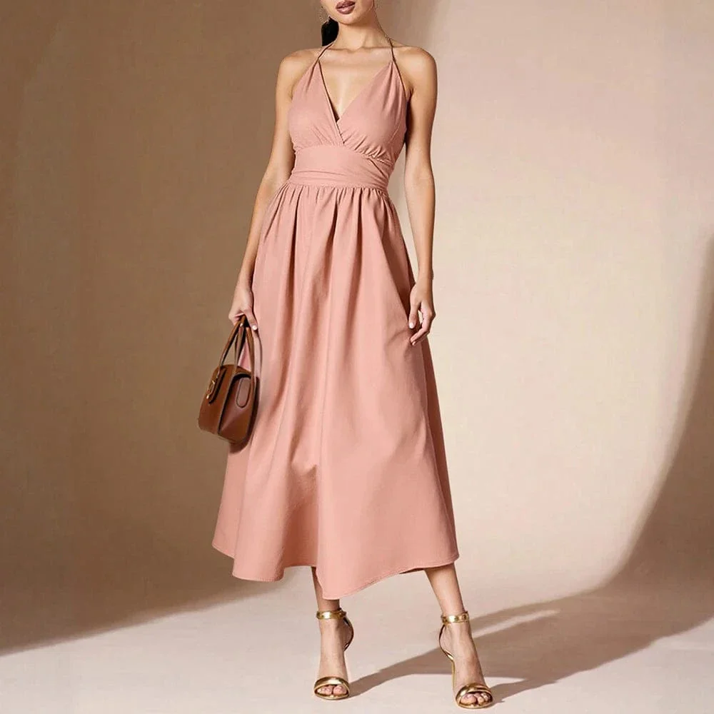 Robe rose poudrée midi évasée à bretelles : l’élégance par excellence