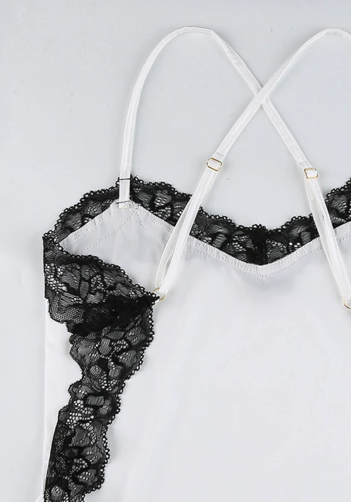 Robe en Satin de couleur Blanche avec Dentelle noire