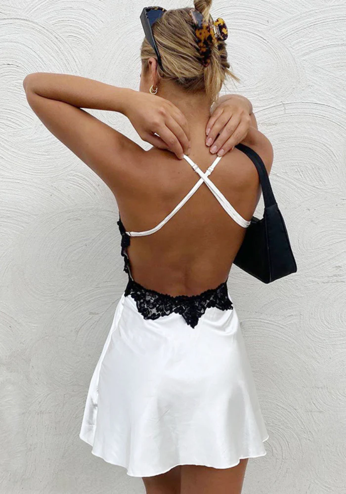 C’est la robe en satin indispensable à votre garde-robe de l’été ! Sa coupe mini et fluide sera parfaite pour vous donner une sensation de légèreté durant les chaudes journées. La dentelle noire et le somptueux dos nu croisé, ajoutent cette incroyable touche de sexy et glamour à votre tenue.