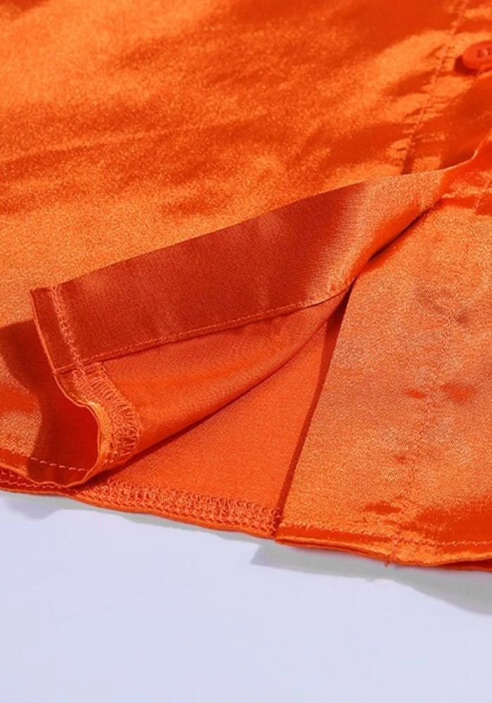 Donnez de l’énergie à votre vie ainsi qu’à votre look avec cette incroyable robe en satin. Cette sublime couleur orange vous donnera une allure éclatante. En plus d’être pétillante, vous serez ultra sexy grâce à cette coupe style chemise super courte. On adore cet effet cintré qui viendra marquer votre taille, pour mettre en valeur votre silhouette.