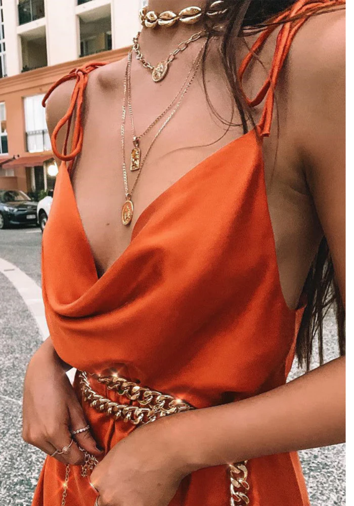 Donnez de la vivacité à votre vie et à votre look avec cette incroyable robe en satin. Cette sublime couleur orange vous fera rayonner. Elle deviendra votre indispensable de l’été grâce à sa coupe légère et fluide, super rafraichissante ! Vous pourrez vous-même décider de marquer votre taille, avec la ceinture ficelée.