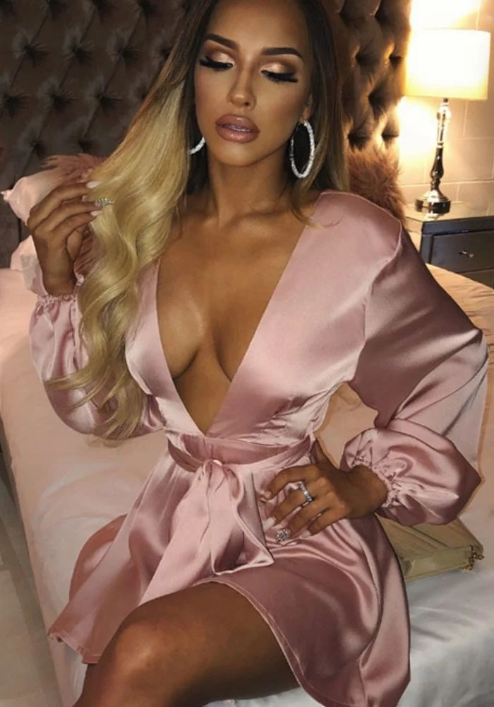 Robe en satin de couleur rose clair